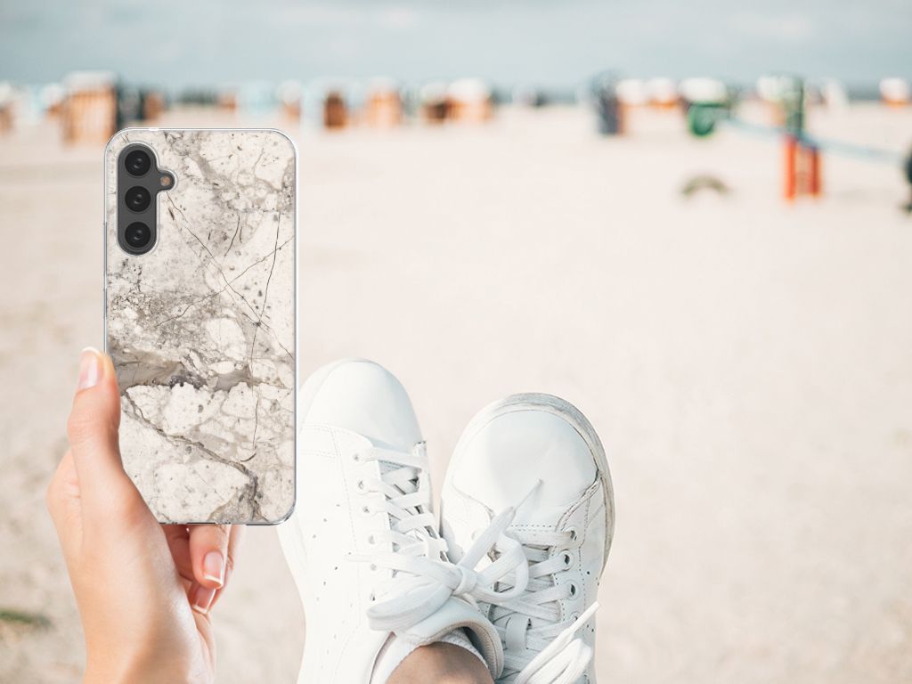 Dit design hoesje met Marmer Beige is voor de artistieke personen onder ons. De Grieken en Romeinen wisten het steen al te waarderen door het als bouw- en bekledingsmateriaal toe te passen. Naast het witte Carrara marmer met haar zacht grijze geaderde belijning zijn de diverse marmersoorten in een ruim kleurenpallet te krijgen. We hebben verschillende kleuren op design hoesjes gezet, zoals in dit geval beige marmer. Dit is een Samsung Galaxy A34 TPU Siliconen Hoesje met marmer in beige kleur. Het marmer wordt bedrukt op de voorkant van een tpu case, die beschikt over opstaande randen aan de voorkant en goed combineert met een screenprotector. De rijkheid aan kleuren en varianties in afwerking geeft designers de vrijheid om met marmer hele mooie architectonische projecten te realiseren. Wij hebben onze designer ook veel vrijheid gegeven. Het resultaat zie je terug in deze tpu case met beige marmer, die jouw smartphone goed beschermt. De zijkanten van de case worden niet bedrukt met marmer.