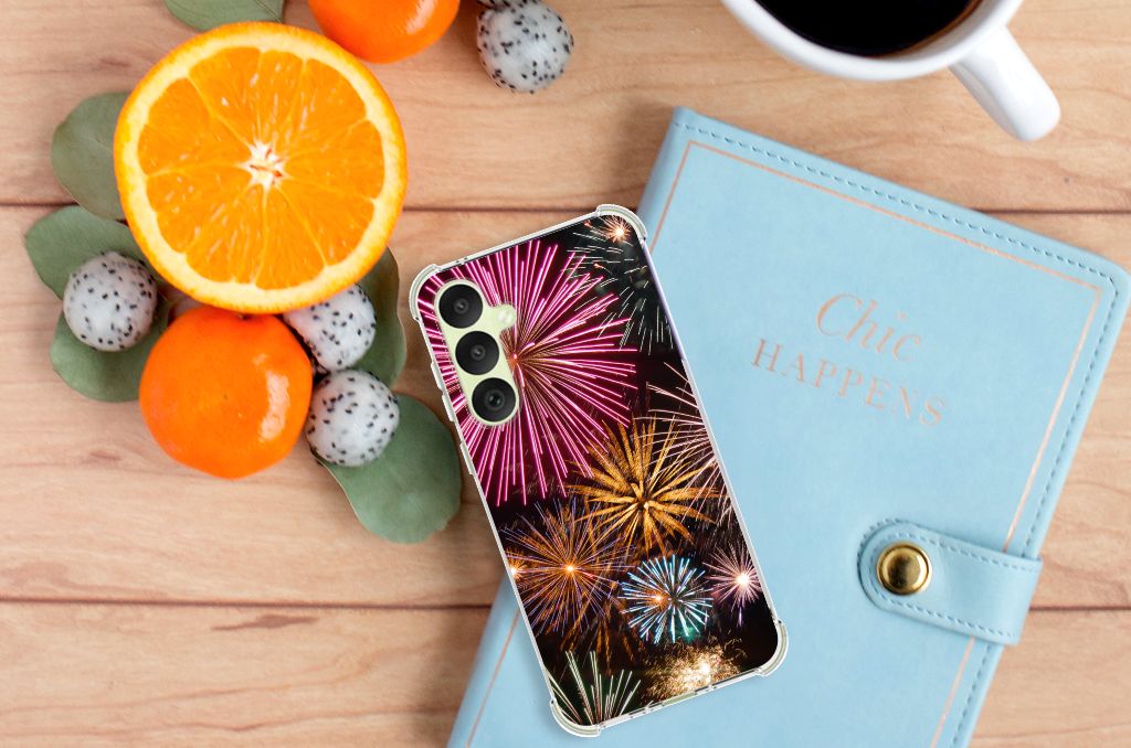 Ben je op zoek naar een uniek telefoonhoesje voor je Samsung Galaxy A35? Dan ben je bij B2C Telecom aan het juiste adres! Speciaal voor jou hebben we dit prachtige Vuurwerk design in onze collectie hoesjes opgenomen. Het design wordt bedrukt op een Anti Shock Bumper Case en is gemaakt van flexibel rubber. Het hoesje is perfect voor de actieve smartphonegebruiker door de opstaande randen/hoeken. Denk aan mensen die veel sporten, reizen of wandelen en net iets meer zekerheid willen als het op hun geliefde telefoon aankomt. Het design wordt alleen aan de bovenkant van het hoesje bedrukt en de randen blijven transparant. Aan de zijkanten zijn uitsparingen gemaakt waardoor je met gemak alle knoppen en poorten kunt bedienen. Wij adviseren om dit hoesje in combinatie met een screenprotector te gebruiken voor een langere levensduur van je telefoon. Wil je dit hoesje nog iets extra's geven? Voeg dan gratis je naam of een quote toe! Is dit design hoesje toch niet helemaal wat je zocht? Ontwerp dan zelf een hoesje in ons ontwerpprogramma.