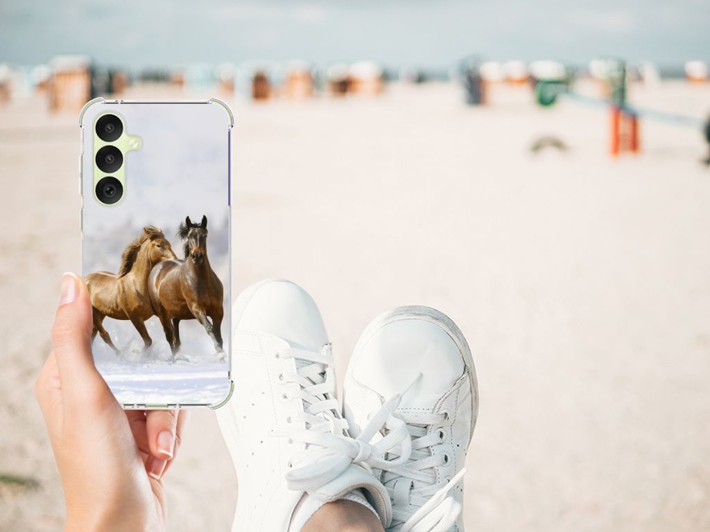 Ben je op zoek naar een uniek telefoonhoesje voor je Samsung Galaxy A35? Dan ben je bij B2C Telecom aan het juiste adres! Speciaal voor jou hebben we dit prachtige Paarden in onze collectie hoesjes opgenomen. Het design wordt bedrukt op een Case Anti-shock en is gemaakt van flexibel rubber. Het hoesje is perfect voor de actieve smartphonegebruiker door de opstaande randen/hoeken. Denk aan mensen die veel sporten, reizen of wandelen en net iets meer zekerheid willen als het op hun geliefde telefoon aankomt. Het design wordt alleen aan de bovenkant van het hoesje bedrukt en de randen blijven transparant. Aan de zijkanten zijn uitsparingen gemaakt waardoor je met gemak alle knoppen en poorten kunt bedienen. Wij adviseren om dit hoesje in combinatie met een screenprotector te gebruiken voor een langere levensduur van je telefoon. Wil je dit hoesje nog iets extra's geven? Voeg dan gratis je naam of een quote toe! Is dit design hoesje toch niet helemaal wat je zocht? Ontwerp dan zelf een hoesje in ons ontwerpprogramma.