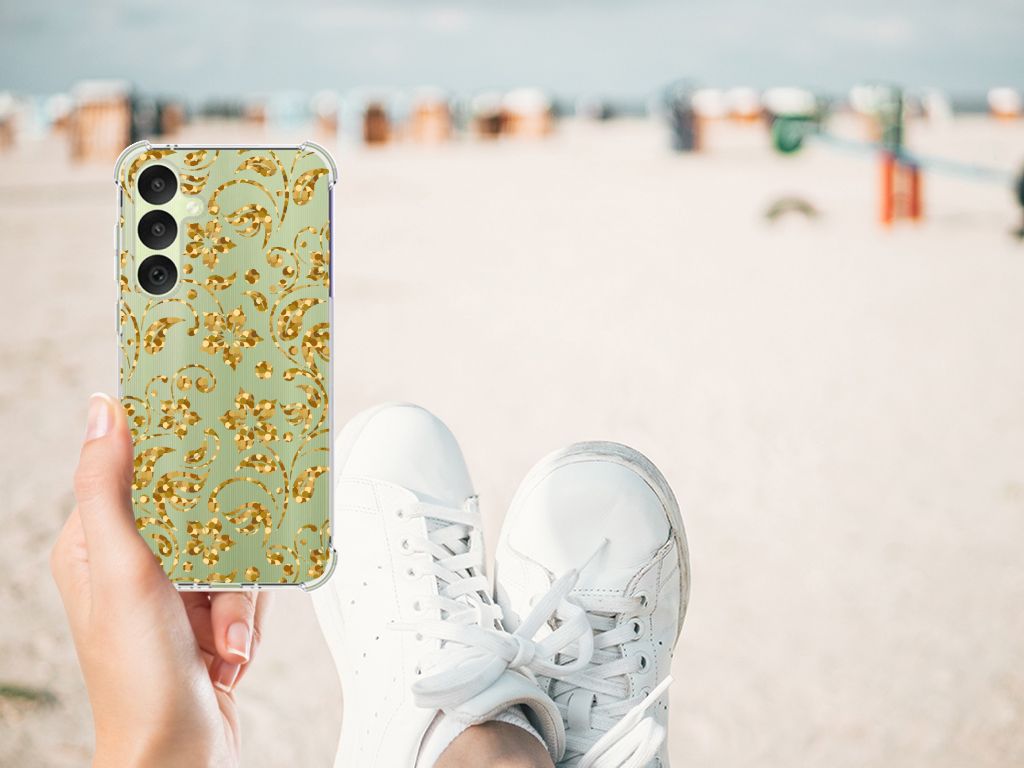 Ben je op zoek naar een uniek telefoonhoesje voor je Samsung Galaxy A35? Dan ben je bij B2C Telecom aan het juiste adres! Speciaal voor jou hebben we dit prachtige Gouden Bloemen design in onze collectie hoesjes opgenomen. Het design wordt bedrukt op een Case en is gemaakt van flexibel rubber. Het hoesje is perfect voor de actieve smartphonegebruiker door de opstaande randen/hoeken. Denk aan mensen die veel sporten, reizen of wandelen en net iets meer zekerheid willen als het op hun geliefde telefoon aankomt. Het design wordt alleen aan de bovenkant van het hoesje bedrukt en de randen blijven transparant. Aan de zijkanten zijn uitsparingen gemaakt waardoor je met gemak alle knoppen en poorten kunt bedienen. Wij adviseren om dit hoesje in combinatie met een screenprotector te gebruiken voor een langere levensduur van je telefoon. Wil je dit hoesje nog iets extra's geven? Voeg dan gratis je naam of een quote toe! Is dit design hoesje toch niet helemaal wat je zocht? Ontwerp dan zelf een hoesje in ons ontwerpprogramma.