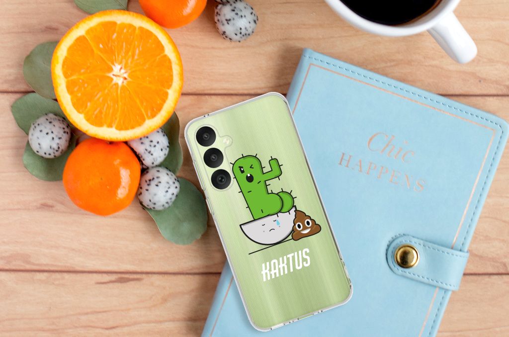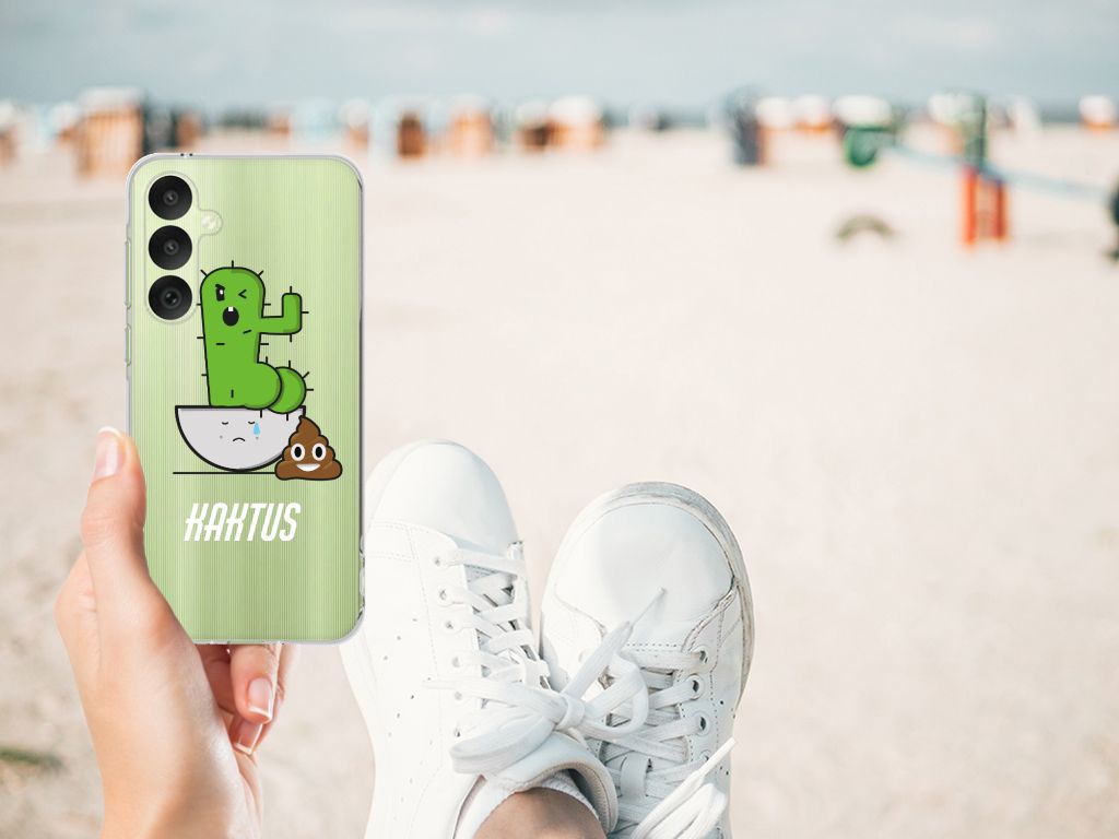 De cactus is leuk, hip en makkelijk te verzorgen. Maar wie denkt dat hij helemaal zonder aandacht kan, heeft het mis. Op dat moment komt hij in opstand, zoals op dit grappige design hoesje met cactus te zien is. Deze Telefoonhoesje met Naam met Cactus Poo design is van alle markten thuis. Het is een zeer veilig maar ook prachtig en praktisch hoesje. Dat bewijzen het flexibele en schokabsoberende materiaal en het lichte gewicht. De meeste cactussen komen uit Amerika. Daar groeien ze in hun natuurlijke omgeving, de woestijn en steppen. Maar ze groeien ook in tropische regenwouden. Dit geeft aan dat de cactus een plant is die zich makkelijk aanpast. Dat geldt dus helaas niet voor de cactus op dit tpu hoesje, maar jouw Samsung Galaxy A35 is wel goed beschermd. Valt de telefoon op de grond, dan beschermen de opstaande randen van de case het touchscreen. Alleen de bovenkant van dit hoesje wordt bedrukt met de geinige kaktus. De zijkanten van de TPU case blijven transparant.