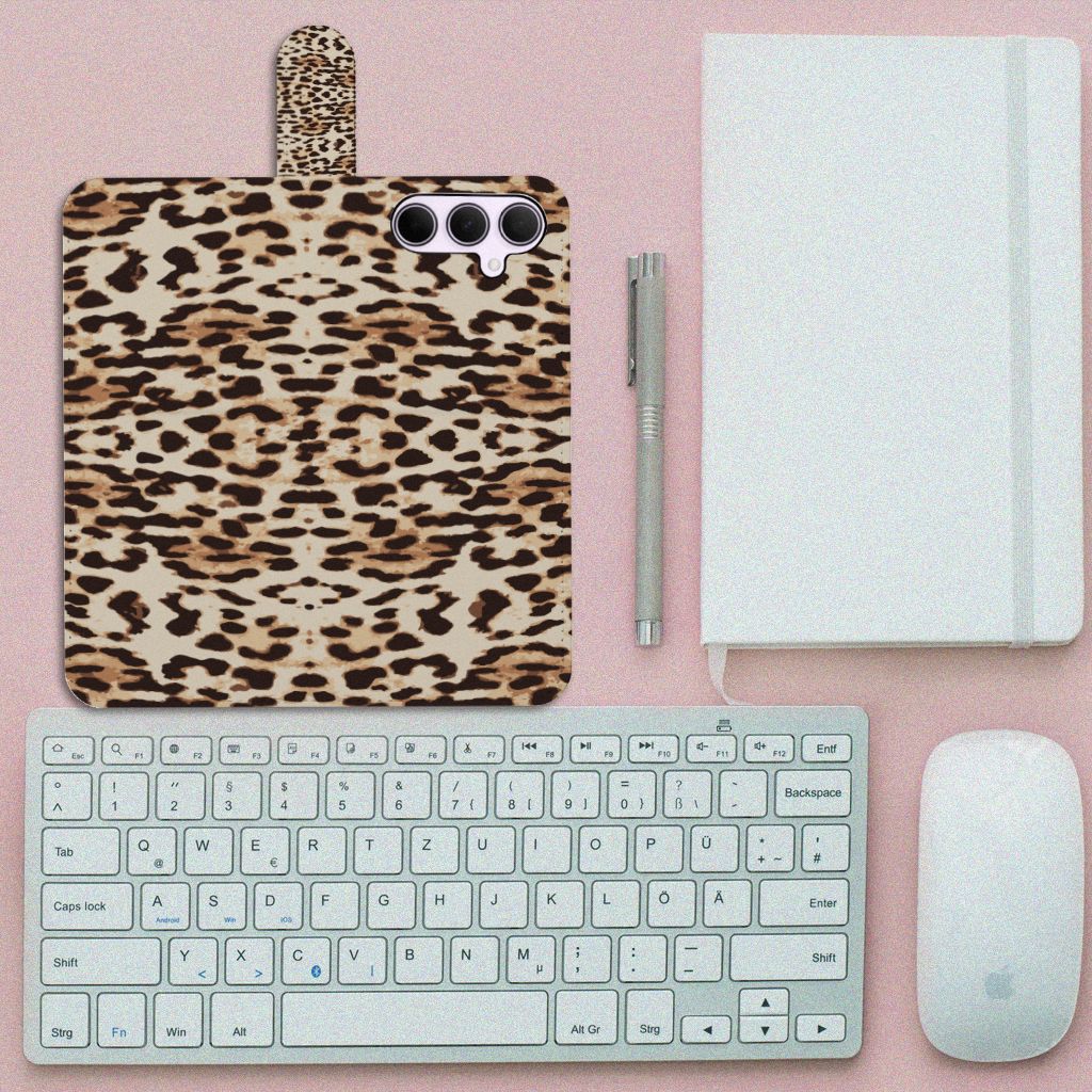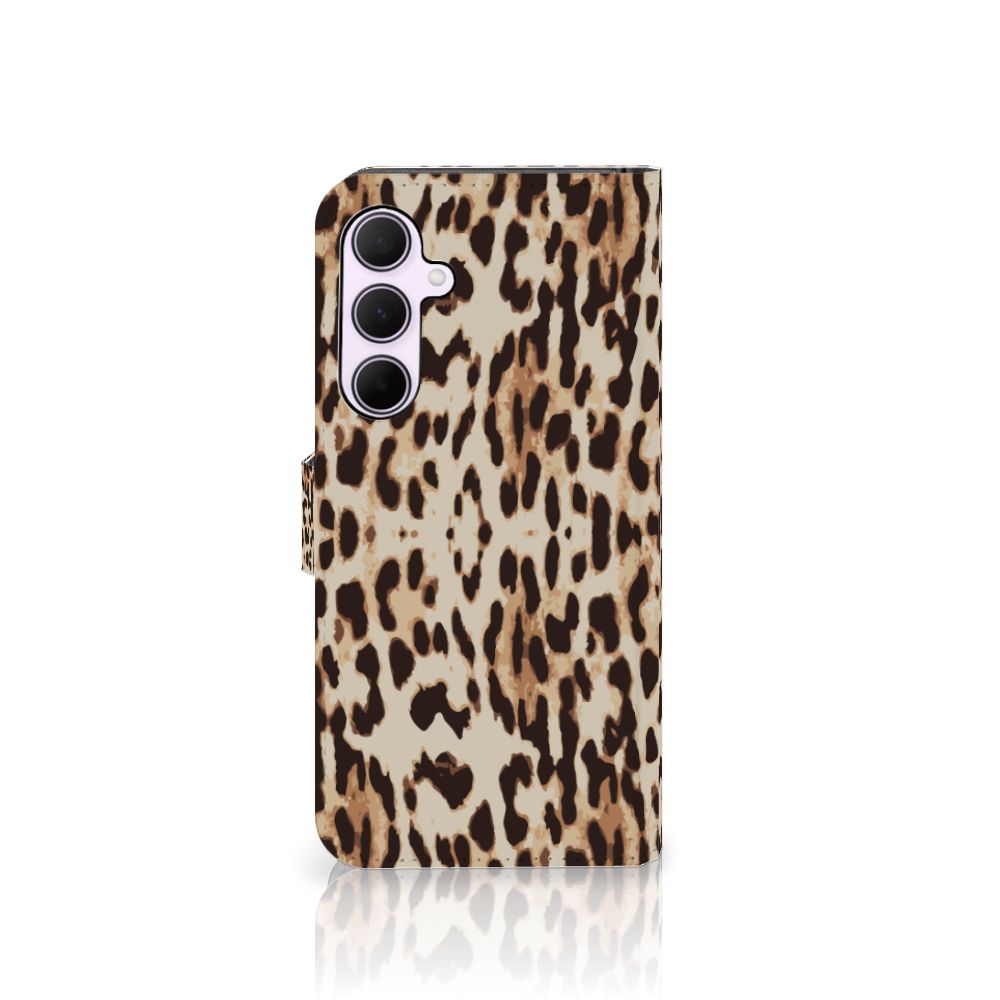 Samsung Galaxy A35 Telefoonhoesje met Pasjes en met magnetische sluitclip Leopard
