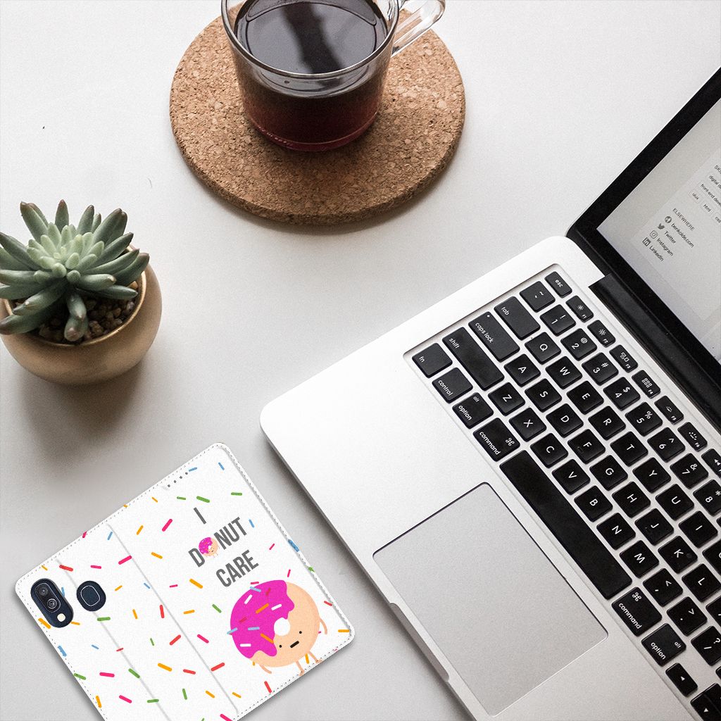 De cartoon met Donut op dit design hoesje geeft jouw smartphone een grappige en vrolijke uitstraling. De Samsung Galaxy A40 Flip Style Cover zorgt ervoor dat je je schouders op zult halen als je telefoon een keer op de grond valt. Omdat er geen schade zal optreden kun jij je weg weer heel makkelijk vervolgen. De grappige Donut Care stand case is een zeer populair product. Allereerst is het nergens anders te krijgen. Het design is namelijk van de hand van onze eigen ontwerper. Daarnaast zal de case jouw smartphone aan alle zijden beschermen. Ook heeft het Donut Care hoesje een vakje aan de binnenzijde en een speciale standaard. Ook kun je je eigen unieke hoesje ontwerpen, met eigen cartoons, foto’s en teksten. De houder aan de binnenzijde van de Donut Care case is van TPU, de buitenzijde van PU leer.