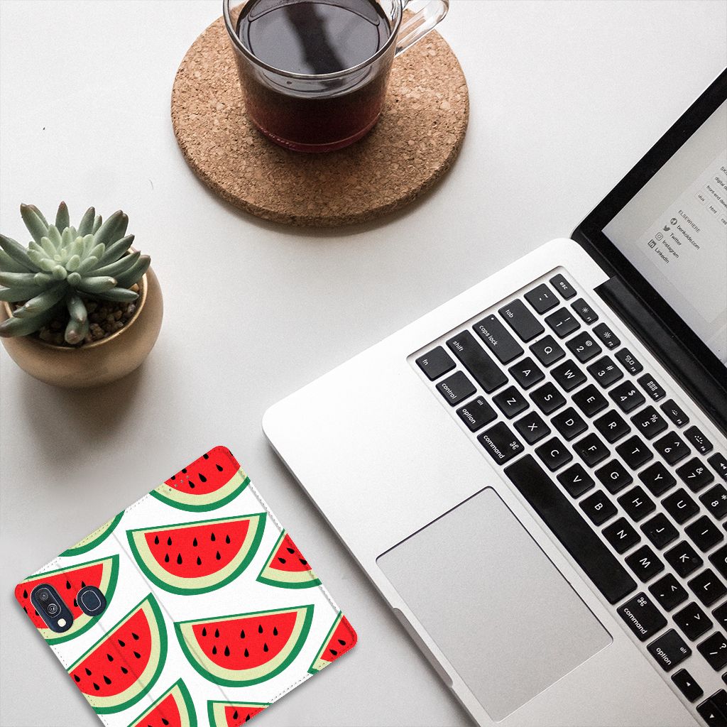 Watermeloenen zijn uitstekende dorstlessers, misschien dat je daarom juist in de zomermaanden extra enthousiast raakt van dit design hoesje Watermelons. Jij blijft gezond als je zo nu en dan een watermeloen neemt, jouw smartphone blijft in tact als je er deze Samsung Galaxy A40 Flip Style Cover omheen doet. De stand case beschermt jouw telefoon aan alle kanten en beschikt over een 1 opbergvakje en een speciale standaard. Het hoesje wordt afgesloten met een magneet aan de binnenzijde. De houder aan de binnenzijde is van TPU. Je kunt ook kiezen voor andere soorten fruit op je hoesje. Kijk maar eens naar onze andere design hoesjes op onze website.