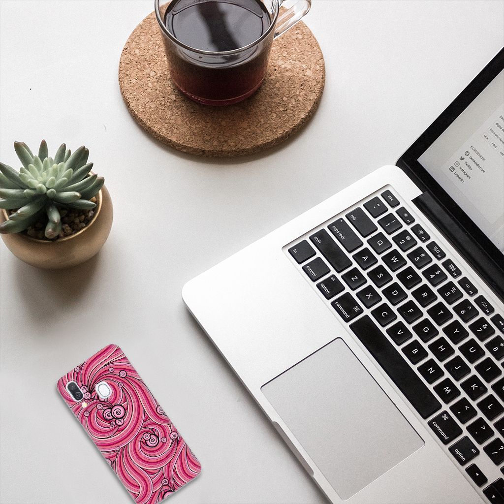 Deze mooie Samsung Galaxy A40 Hoesje maken met Swirl Pink is een geweldige en duurzame bescherming voor jouw smartphone. De kleuren zijn zeer subtiel op het hoesje gezet en worden op de bovenkant van de case bedrukt. Dit drukwerk doen we in eigen beheer, zodat het roze en het zwart ook uitstekend tot zijn recht komen op de tpu case. Een tpu hoesje is perfect op maat gemaakt en heeft een mooie uitstraling. Daarnaast is de case zeer flexibel en het materiaal is onbreekbaar. De case heeft opstaande randen ter bescherming van het scherm. De randen van het tpu hoesje worden niet in roze met zwart bedrukt. Nergens tref je een hoesje met deze kleuren aan dat zo goed past bij jouw smartphone.