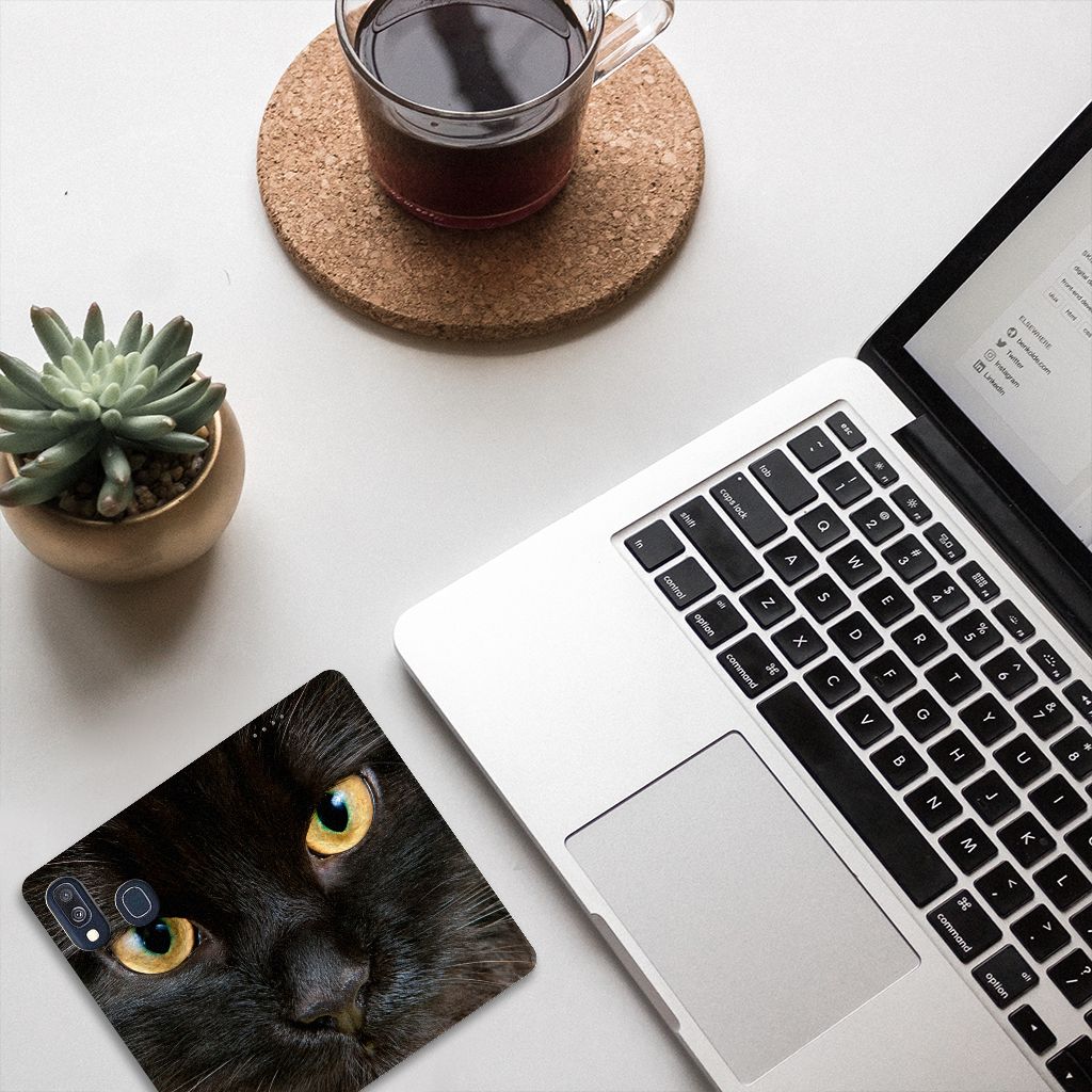 warte katten zijn heel speciaal, vandaar we een exemplaar op een design hoesje hebben gezet. Een zwarte kat schijnt bijvoorbeeld veel beter te kunnen horen dan witte katten. Deze zwarte kat staat op zeer prominente wijze op een stand case. Een Samsung Galaxy A40 Hoesje maken met zwarte kat beschermt jouw smartphone aan alle zijden en wordt ook volledig bedrukt. De stand case met zwarte kat ziet er geweldig uit en is voorzien van verschillende uitsparingen en een speciale standaard. Alle zijden van de case zijn bedrukt. Dit design hoesje is van TPU aan de binnenzijde en zeer flexibel. Verder heeft de case een houder voor een pasje.