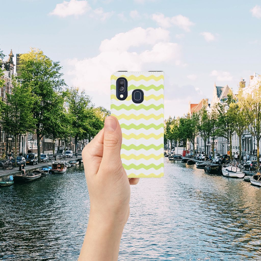 Dit Waves Yellow design hoesje met licht groene en gele golven is speciaal ontworpen voor jouw telefoon. We hebben een vleugje lichtgeel toegevoegd, zodat de case er een beetje spannender en leuker uitziet. Dit licht groene hoesje met licht groene golven ziet er oogstrelend uit. Het wordt in ons eigen magazijn bedrukt, in zeer goede kwaliteit inkt. Wij kunnen dus een zeer duurzaam hoesje met licht groene golven garanderen. Dit hele mooie Samsung Galaxy A40 Hoesje met Magneet heeft vele extra’s. Is dit licht groene design hoesje je op het lijf geschreven? Grijp dan nu je kans. Deze stand case met licht groene golven beschermt jouw telefoon aan alle kanten en beschikt over een 1 opbergvakje en een speciale standaard. Het licht groene hoesje wordt afgesloten met een magneet aan de binnenzijde. De houder aan de binnenzijde is van het flexibele TPU. Alle zijden van de stand case worden bedrukt.