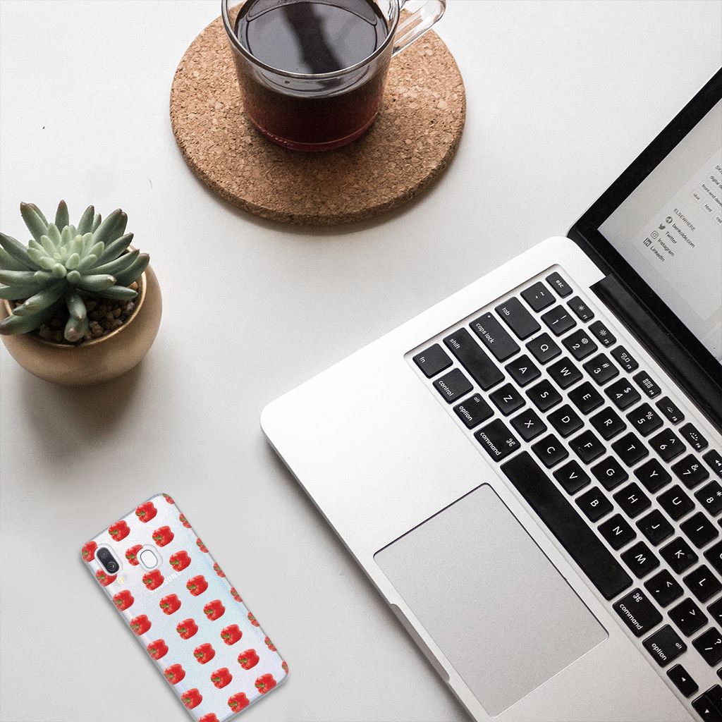 Er zit pit in jouw Samsung Galaxy A40 Siliconen Case dankzij dit design met rode paprika’s. Paprika’s zijn er in allerlei kleuren en vormen en ze hebben gemeen dat ze heel erg gezond zijn. De rode paprika’s op deze case staan op een grijs met witte geblokte achtergrond en vormen een opvallende verschijning. Heb jij ooit iemand in je nabije omgeving rond zien lopen met een design hoesje met rode paprika’s? Waarschijnlijk niet. Dit hoesje wordt alleen aan de bovenkant bedrukt met paprika’s en is zeer flexibel. De randen van het hoesje blijven transparant en worden niet bedrukt. Met dit hoesje past jouw telefoon altijd in je broekzak. Zeker weten dat je met dit hoesje met rode paprika’s een smartphone accessoire te pakken hebt waarmee je jezelf in de schijnwerpers zet. Als je andere kleuren paprika’s op je hoesje wilt, raden we je aan ons assortiment design hoesjes te bekijken of zelf een hoesje te ontwerpen.