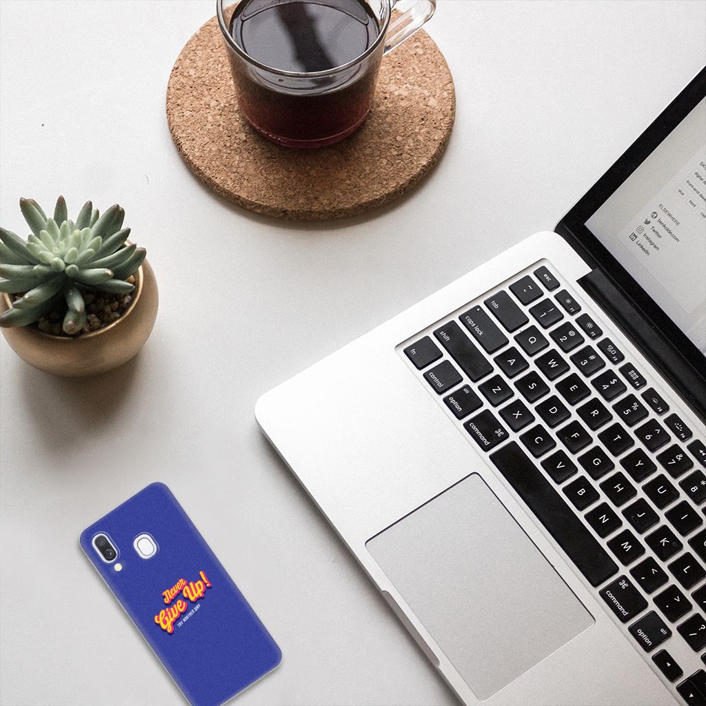 Ben je op zoek naar een uniek telefoonhoesje voor je Samsung Galaxy A40? Dan ben je bij B2C Telecom aan het juiste adres! Speciaal voor jou hebben we dit prachtige Never Give Up design in onze collectie hoesjes opgenomen. Het design wordt bedrukt op een Siliconen hoesje met naam en is gemaakt van flexibel rubber. Het design wordt alleen aan de bovenkant van het hoesje bedrukt en de randen blijven transparant. Aan de zijkanten zijn uitsparingen gemaakt waardoor je met gemak alle knoppen en poorten kunt bedienen. Wij adviseren om dit hoesje in combinatie met een screenprotector te gebruiken voor een langere levensduur van je telefoon. Wil je dit design hoesje nog iets extra's geven? Voeg dan gratis je naam of een quote toe! Is dit design hoesje toch niet helemaal wat je zocht? Ontwerp dan zelf een hoesje in ons ontwerpprogramma.