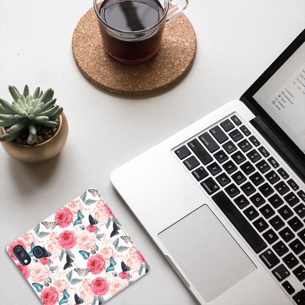 Ben je op zoek naar een uniek telefoonhoesje voor je Samsung Galaxy A40? Dan ben je bij B2C Telecom aan het juiste adres! Speciaal voor jou hebben we dit prachtige Butterfly Roses design in onze collectie hoesjes opgenomen. Het design wordt bedrukt op een Smart Cover en heeft een vakje aan de binnenkant voor een pasje. Het fijne aan dit hoesje is dat je het als standaard neer kunt zetten. Hierdoor geniet je nog meer als je een filmpje aan het kijken bent op je telefoon. Het hoesje wordt afgesloten door magneten aan de binnenkant. Wil je dit design hoesje nog iets extra's geven? Voeg dan gratis je naam of een quote toe! Is dit design hoesje toch niet helemaal wat je zocht? Ontwerp dan zelf een hoesje in ons ontwerpprogramma.