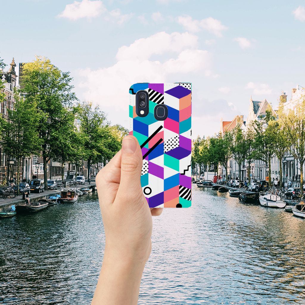 Stand Case Samsung Galaxy A40 Design Blokken Kleurrijk