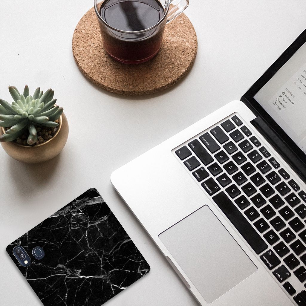 Dit design hoesje met Marmer Zwart is voor de artistieke personen onder ons. De Grieken en Romeinen wisten het materiaal al te waarderen door het in de bouw toe te passen. Naast het witte marmer met haar zacht grijze geaderde belijning zijn de diverse soorten in een gevarieerd kleurenpallet te krijgen. We hebben mooie kleuren op design hoesjes gezet, zoals in dit geval zwart marmer. Dit is een Samsung Galaxy A40 Standcase met marmer in zwarte kleur. Het marmer wordt bedrukt op alle zijden van een stand case, die beschikt over 1 vakje voor een pasje en een magnetische sluiting aan de binnenzijde. Verder heeft de hoes een houder van TPU. De rijkdom aan kleuren en varianties in afwerking geeft ontwerpers de vrijheid om met marmer hele mooie architectonische projecten te realiseren. Wij hebben onze ontwerper tevens veel vrijheid gegeven. Het resultaat zie je terug in deze stand case met zwart marmer, dat de ideale bescherming voor jouw smartphone biedt.