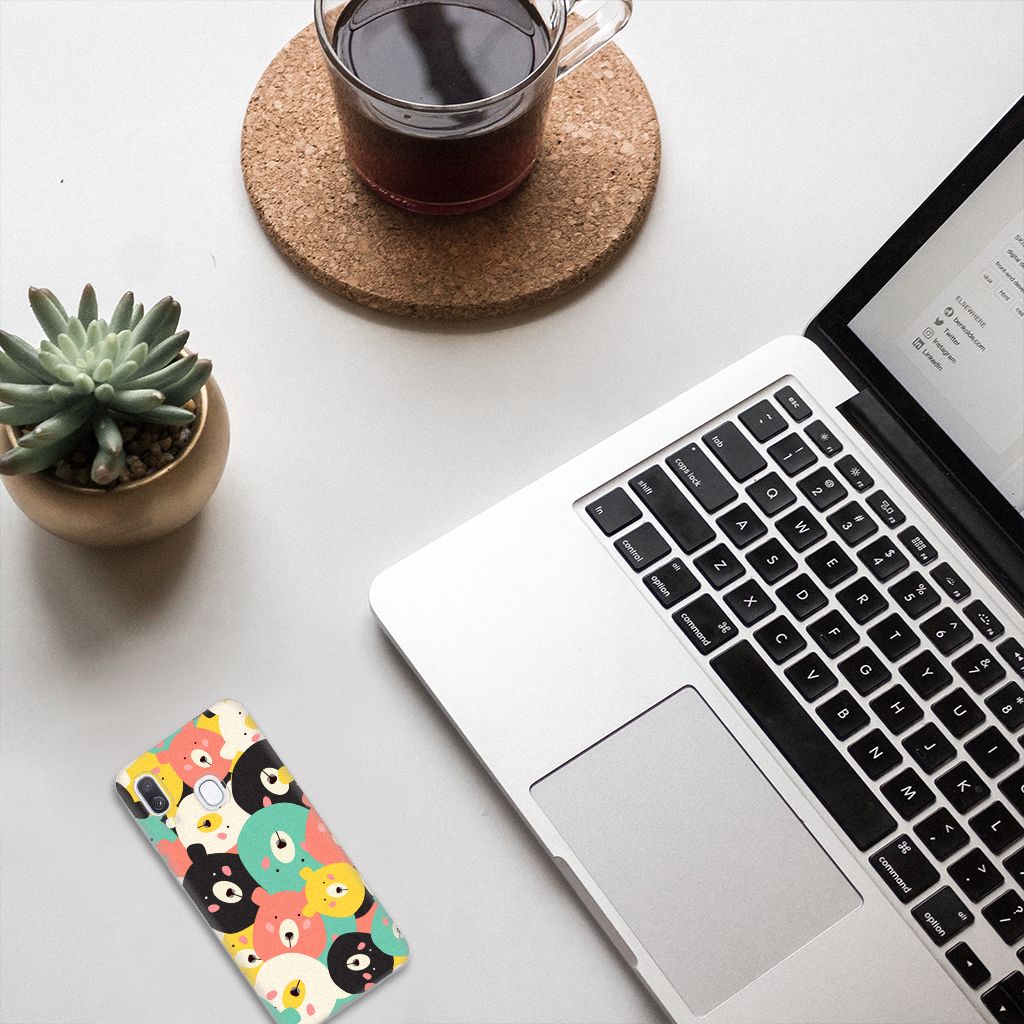Op dit hoesje vind je een bereschattig ontwerp! Vergeef ons de woordgrap, maar hoe moeten we dit lieve ontwerp anders omschrijven? Op dit knuffelige ontwerp zie je leuke, getekende beertjes in vrolijke kleuren als geel, blauw en roze. Dankzij de contrasterende witte en zwarte beertjes vallen de felle kleurtjes nog meer op. Al met al is dit Telefoonhoesje met Naam voor de Samsung Galaxy A40 een perfect hoesje voor de knuffelberen onder ons. TPU is flexibel en onbreekbaar. Zo is je telefoon aan de achterkant en de randen heel goed beschermd. De case met het Bears-design is aan de bovenkant bedrukt, de randen blijven transparant. Het TPU-hoesje is perfect te combineren met een screenprotector, zo zijn je telefoon en je beeldscherm perfect beschermd.
