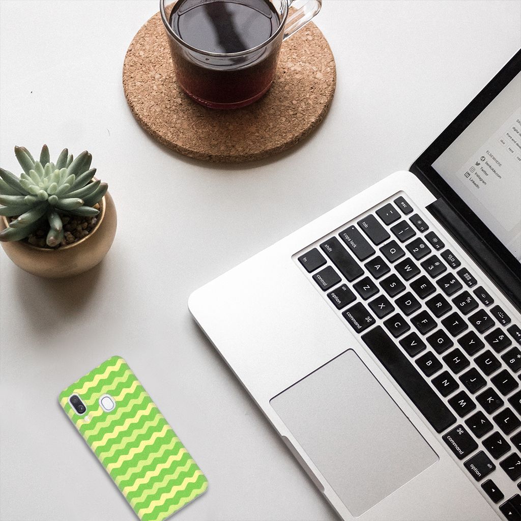 Dit groene design hoesje met groene golven is speciaal ontworpen voor jouw telefoon. We hebben een vleugje geel toegevoegd, zodat er sprake is van variatie. Dit Waves Green hoesje ziet er flitsend uit. Dat kan ook niet anders, als je weet dat we veel energie steken in het bedenken van originele designs. Een heel strak Samsung Galaxy A40 TPU bumper, met zeer veel opties. Past dit groene design hoesje met golven goed bij jou? Bestel het dan vandaag nog, tegen zeer lage kosten. Het design staat op een TPU case. Dit hoesje wordt alleen aan de bovenkant bedrukt en is zeer flexibel. De randen van het hoesje met groene golven blijven transparant en worden niet bedrukt. Met dit hoesje past jouw telefoon altijd in je broekzak.