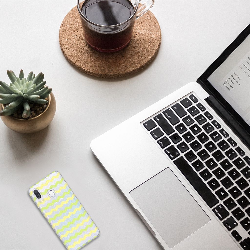 Dit Waves Yellow design hoesje met licht groene en gele golven is speciaal ontworpen voor jouw telefoon. We hebben een vleugje lichtgeel toegevoegd, zodat de case er een beetje spannender en leuker uitziet. Dit licht groene hoesje met licht groene golven ziet er oogstrelend uit. Het wordt in ons eigen magazijn bedrukt, in zeer goede kwaliteit inkt. Wij kunnen dus een zeer duurzaam hoesje met licht groene golven garanderen. Dit hele mooie Samsung Galaxy A40 TPU bumper heeft vele extra’s. Is dit licht groene design hoesje je op het lijf geschreven? Grijp dan nu je kans. Deze TPU case met lichtgroene golven wordt alleen aan de bovenkant bedrukt en is zeer flexibel. De randen van het hoesje met licht groene golven blijven transparant en worden niet bedrukt. Met dit hoesje past jouw telefoon altijd in je broekzak.