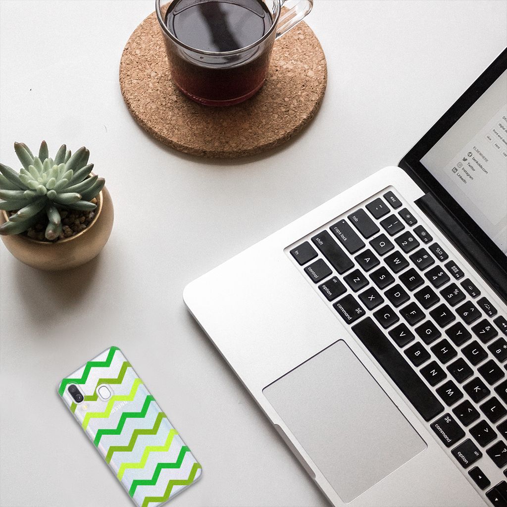 Dit zigzag groene design hoesje is speciaal ontworpen voor jou. We hebben bewust verschillende stijlen groen gebruikt, zodat er voldoende sprake is van variatie. Dit groene hoesje ziet er super strak uit. Dat kan ook niet anders als je weet dat onze designer zijn creativiteit heeft gebruikt. Hij schudt voortdurend nieuwe designs uit zijn mouw en dit zigzag groene hoesje is een van zijn fraaiste creaties. Een heel tof Samsung Galaxy A40 TPU bumper, al zeggen we het zelf. Valt dit Zigzag Groen design hoesje goed bij jou? Bestel het dan vandaag nog en je hebt het morgen in huis. Het design staat op een TPU case. Dit hoesje wordt alleen aan de bovenkant bedrukt en is zeer flexibel. De randen van het hoesje blijven transparant en worden niet bedrukt. Met dit hoesje past jouw telefoon altijd in je broekzak.