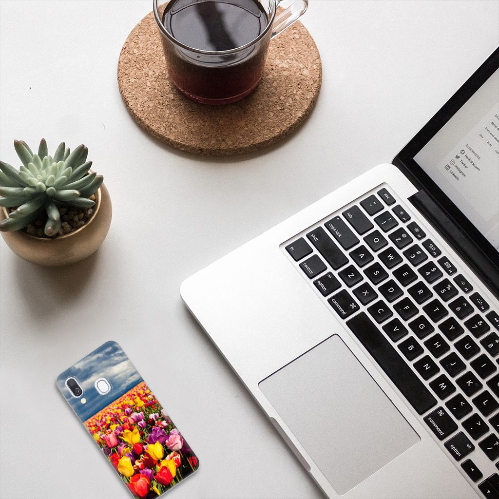 De tulp is een oer-Nederlandse bloem en heeft een lange geschiedenis. Deze Samsung Galaxy A40 TPU Case met Tulpen ziet er bijzonder kleurrijk uit. Dit fleurige smartphone hoesje geeft een bijzondere bescherming van jouw apparaat. Tulpen zijn ideaal voor een kleurrijk begin van het tuinseizoen. Iedereen wordt er vrolijk van om te zien hoe deze bloemen het voorjaar kleur geven en het begin van de warmere tijd van het jaar aankondigen. Dan kan het toch niet anders of jij wordt heel erg blij van deze tpu case met tulpen? Deze tpu case is zeer flexibel en past altijd in je broekzak. Het materiaal is zeer elastisch en onbreekbaar. De case wordt niet aan alle zijden bedrukt met tulpen. De randen blijven transparant. Je kunt ook zelf een tpu case maken met daarop jouw favoriete bloem.