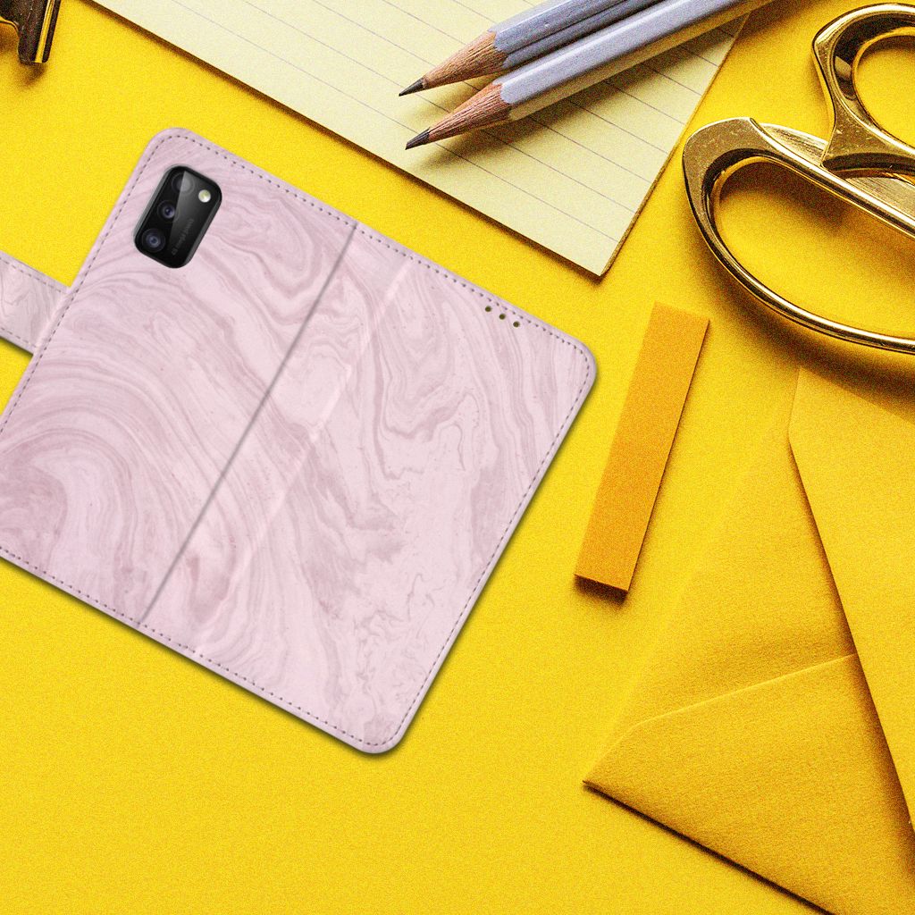 Samsung Galaxy A41 Bookcase met magnetische sluitclip Marble Pink