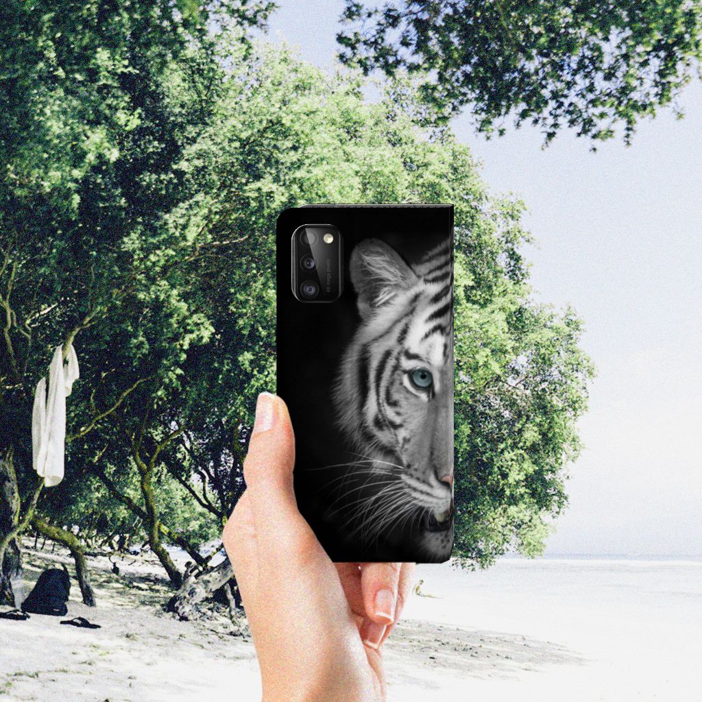 Omdat de Witte Tijger zo bijzonder is, zijn wij bereid deze voor zeer lage kosten op een stand case te zetten. Dit kunnen we zo goedkoop doen omdat we het drukwerk in eigen beheer doen. Witte tijgers leefden lange tijd in de bossen van India, Bangladesh, Nepal, Bhutan en China en kunnen wel 257 kilo wegen. Dit zwaargewicht kunnen we bedrukken op verschillende soorten hoesjes, zoals deze stand cases. Het Samsung Galaxy A41 Hoesje maken is van PU-leer (buitenzijde) en TPU (binnenzijde) en beschikt over een houder voor pasjes en briefgeld. Verder is dit hoesje met witte tijger print voorzien van magneten aan de binnenzijde. Tegenwoordig zijn witte tijgers alleen in gevangenschap te bewonderen. Jij zorgt voor de perfecte bescherming van je smartphone met dit design hoesje met witte tijger.