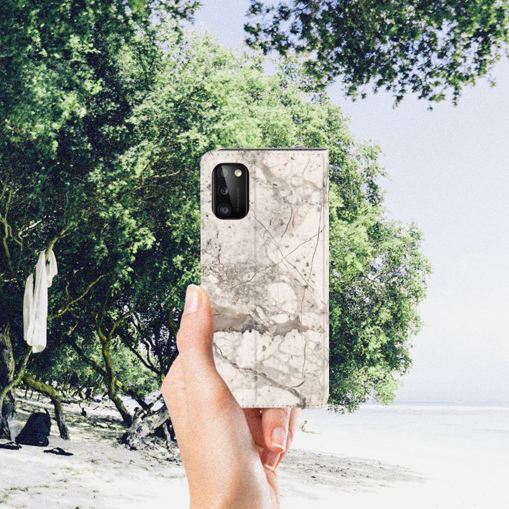 Dit design hoesje met Marmer Beige is voor de artistieke personen onder ons. De Grieken en Romeinen wisten het steen al te waarderen door het als bouw- en bekledingsmateriaal toe te passen. Naast het witte Carrara marmer met haar zacht grijze geaderde belijning zijn de diverse marmersoorten in een ruim kleurenpallet te krijgen. We hebben verschillende kleuren op design hoesjes gezet, zoals in dit geval beige marmer. Dit is een Samsung Galaxy A41 Standcase met marmer in beige kleur. Het marmer wordt bedrukt op alle zijden van een stand case, die beschikt over 1 vakje voor een pasje en toebehoren en een magnetische sluiting aan de binnenkant. Verder heeft de case een houder van TPU. De rijkheid aan kleuren en varianties in afwerking geeft designers de vrijheid om met marmer hele mooie architectonische projecten te realiseren. Wij hebben onze designer ook veel vrijheid gegeven. Het resultaat zie je terug in deze stand case met beige marmer, dat de ideale bescherming voor jouw smartphone biedt.