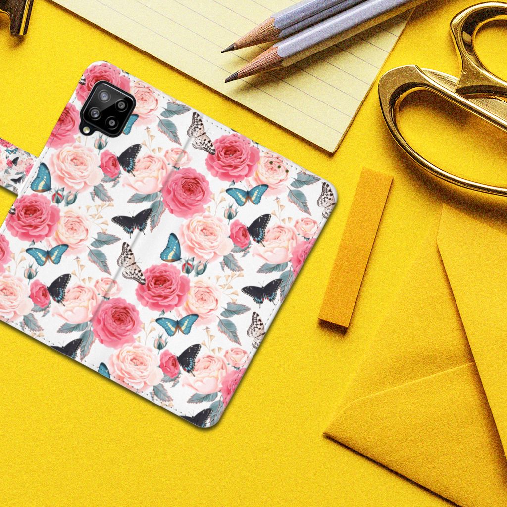 Samsung Galaxy A42 5G Hoesje gemaakt van TPU en kunstleer Butterfly Roses