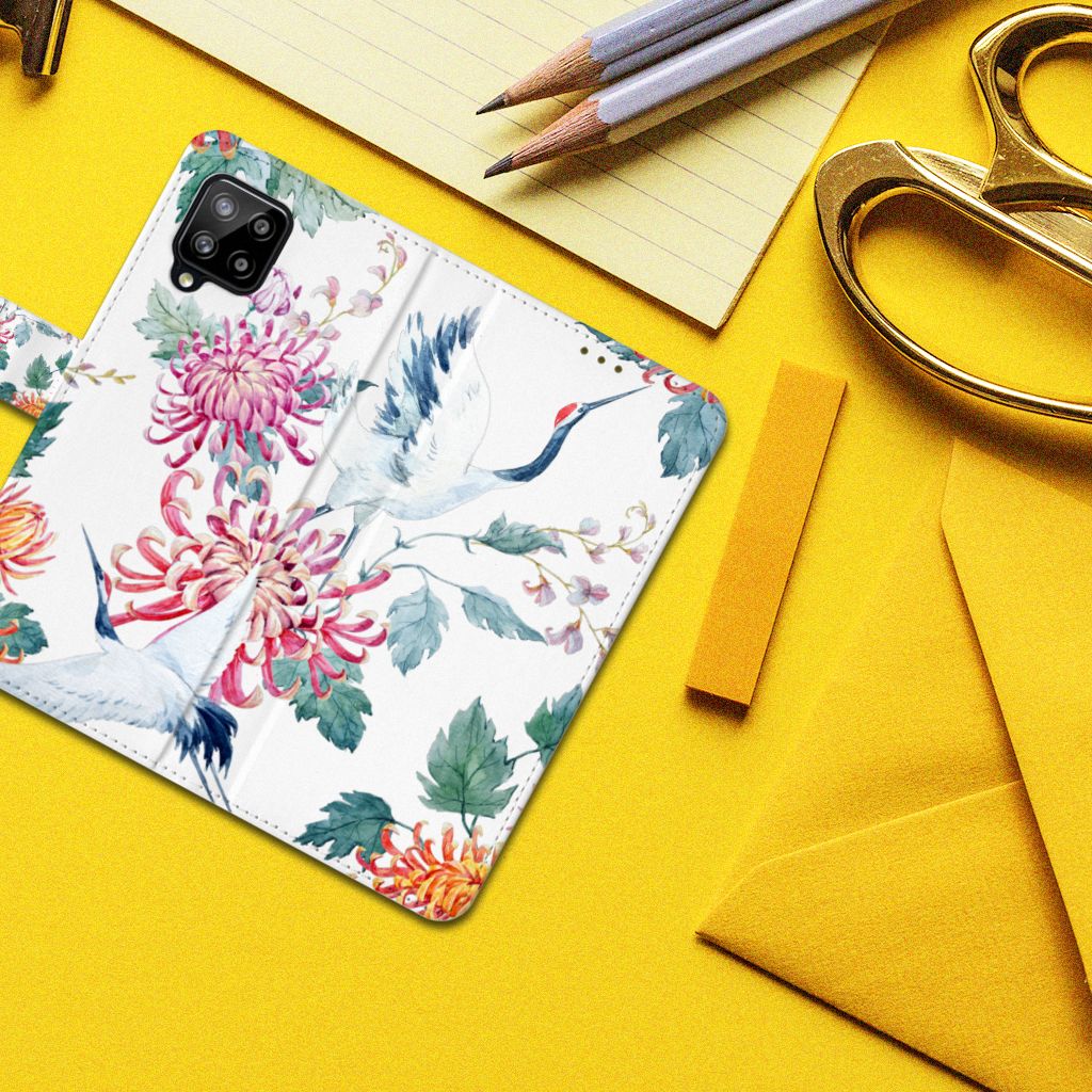 Samsung Galaxy A42 5G Telefoonhoesje sluit met magnetische lipje Bird Flowers