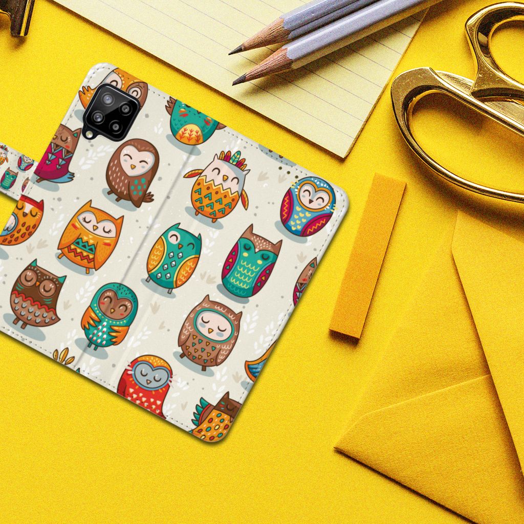 Samsung Galaxy A42 5G Telefoonhoesje met ruimte voor drie pasjes Vrolijke Uilen