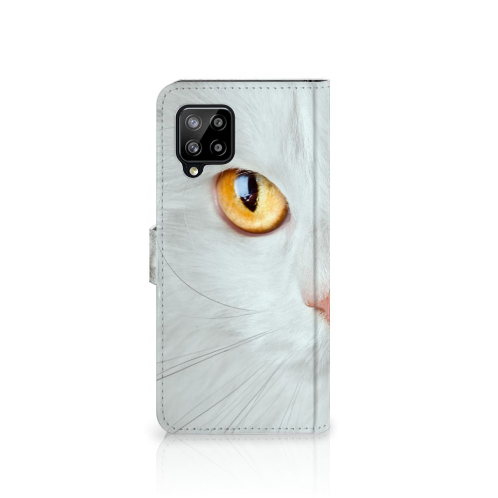 Samsung Galaxy A42 5G Telefoonhoesje met magnetisch lipje als sluiting Witte Kat