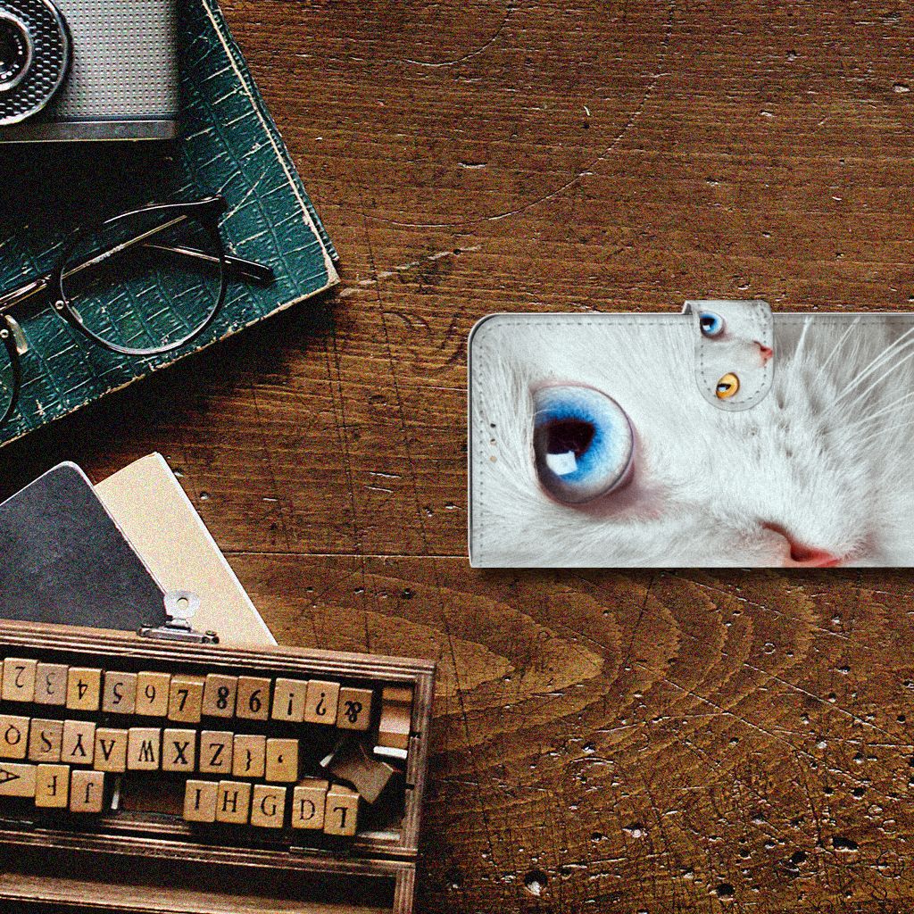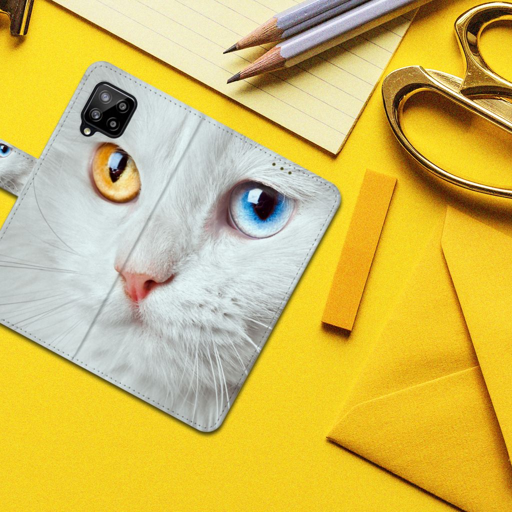 Witte katten zijn erg bijzonder en dat is precies de reden dat wij deze op prominente wijze op dit design hoesje hebben geplaatst. Maar deze witte kat is extra speciaal, doordat de ogen twee verschillende kleuren hebben: blauw en vurig rood. Hiermee heb jij als uniek mens ook een unieke bookcase. Ook de manier waarop dit telefoonhoesje voor de Samsung Galaxy A42 5G is bedrukt, is bijzonder. Je ziet namelijk een kleinere versie van dezelfde kat terug op het lipje. Hierdoor zie je de speciale witte kat twee keer terugkomen op jouw hoesje. Omdat je waarschijnlijk een dierenliefhebber bent als je dit Telefoonhoesje met Pasjes uitkiest, is dit ook een erg duurzaam hoesje. Het hoesje wordt aan alle kanten met duurzame inkt bedrukt.