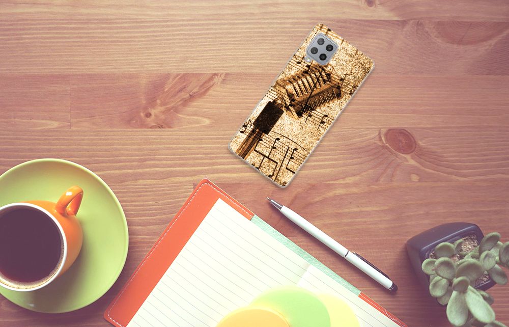 Ben je muzikant, dan is dit design hoesje met Bladmuziek wellicht echt iets voor jou. Met de intrede van nieuwe media wordt de rol van papieren bladmuziek teruggedrongen. Steeds vaker treft men 'bladmuziek' op een beeldschermapparaat, zoals een tablet-pc, e-reader of iPad aan. Gelukkig maar, want als er geen nieuwe media zouden zijn, hadden wij ook nooit onze Phone Case Designer kunnen ontwerpen. Met deze unieke ontwerpmodule kun je jouw favoriete band of artiest op je smartphone hoesje zetten, maar je kunt ook gaan voor dit prachtige design hoesje met print van bladmuziek. Het design staat op een Samsung Galaxy A42 Siliconen Hoesje met foto. Deze case beschermt jouw telefoon vooral aan de achterzijde en zijkanten en is zeer flexibel. Het hoesje blijft aan de zijkanten transparant, de bovenkant is geheel bedrukt. TPU is onbreekbaar materiaal, dat zeer schokabsorberend is. Het hoesje past altijd in je broekzak en combineert uitstekend met een screenprotector.