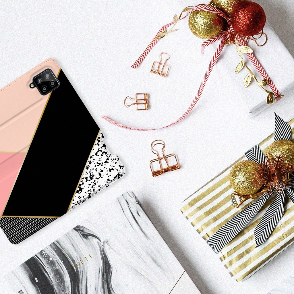 Samsung Galaxy A42 Print Stand Case Zwart Roze Vormen