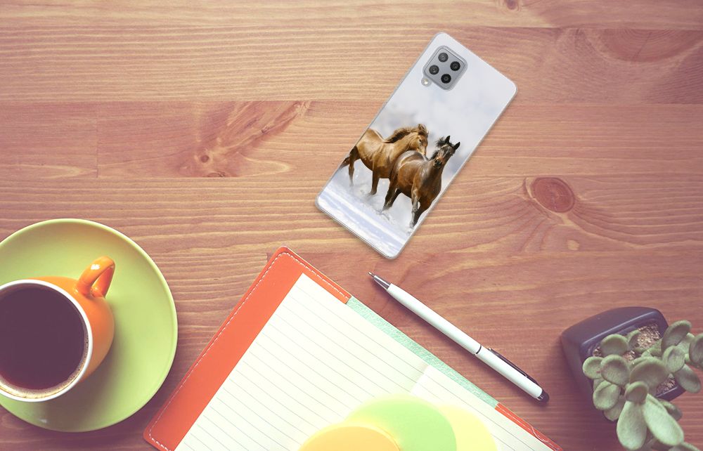 Voor de paardenliefhebbers onder ons hebben we onze collectie uitgebreid met dit design hoesje met print van paarden. Vroeger hield de mens vooral werkpaarden, inmiddels hebben we vriendschap gesloten met het paard. Vandaar dat het ook een favoriet dier is op onze smartphonehoesjes, zoals deze tpu case. Een TPU Hoesje voor de Samsung Galaxy A42 met Paarden is niet alleen super mooi en chique, maar ook nog eens zeer flexibel. Verder is de case schokabsorberend en heeft het opstaande randen. Zie je liever je eigen paard terug op een hoesje. Dat kan! Door zelf een uniek hoesje te ontwerpen, met eigen foto’s en teksten. De TPU case wordt aan de bovenzijde bedrukt, de zijkanten blijven transparant.