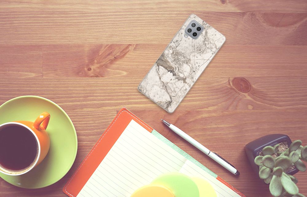 Dit design hoesje met Marmer Beige is voor de artistieke personen onder ons. De Grieken en Romeinen wisten het steen al te waarderen door het als bouw- en bekledingsmateriaal toe te passen. Naast het witte Carrara marmer met haar zacht grijze geaderde belijning zijn de diverse marmersoorten in een ruim kleurenpallet te krijgen. We hebben verschillende kleuren op design hoesjes gezet, zoals in dit geval beige marmer. Dit is een Samsung Galaxy A42 TPU Siliconen Hoesje met marmer in beige kleur. Het marmer wordt bedrukt op de voorkant van een tpu case, die beschikt over opstaande randen aan de voorkant en goed combineert met een screenprotector. De rijkheid aan kleuren en varianties in afwerking geeft designers de vrijheid om met marmer hele mooie architectonische projecten te realiseren. Wij hebben onze designer ook veel vrijheid gegeven. Het resultaat zie je terug in deze tpu case met beige marmer, die jouw smartphone goed beschermt. De zijkanten van de case worden niet bedrukt met marmer.