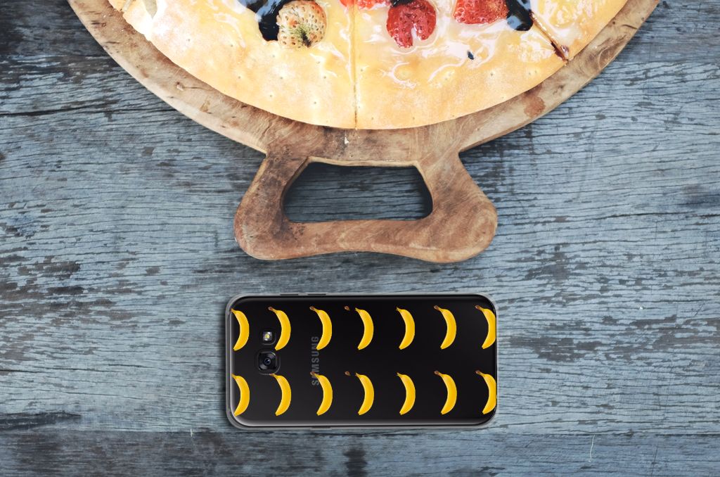 Bananen zitten tjokvol natuurlijke energie-oppeppers. Fructose, glucose, vezels… om er maar eens een paar te noemen. Een banaan is zo’n energiebom, dat wanneer je er twee eet je genoeg energie verzameld hebt om anderhalf uur vol te sporten. Deze vrucht geeft power, daarom misstaan ze ook niet op deze leuke Samsung Galaxy A5 2017 Siliconen Case. Met het aantal bananen dat op dit hoesje staat heb je energie voor een hele maanden of misschien wel een paar maanden. Jouw smartphone blijft zijn kracht behouden als je kiest voor dit design hoesje met bananen. Het grijswit geblokte patroon op de achtergrond geeft nog wat extra’s aan de banaan. Altijd als een print van een banaan op je hoesje willen hebben? Dit is je kans. De bananen staan op een TPU case. Dit hoesje wordt alleen aan de bovenkant bedrukt en is zeer flexibel. Met het aantal bananen dat op dit hoesje staat heb je energie voor een hele maanden of misschien wel een paar maanden. De randen van het hoesje blijven transparant en worden niet bedrukt. Met dit hoesje past jouw telefoon altijd in je broekzak.