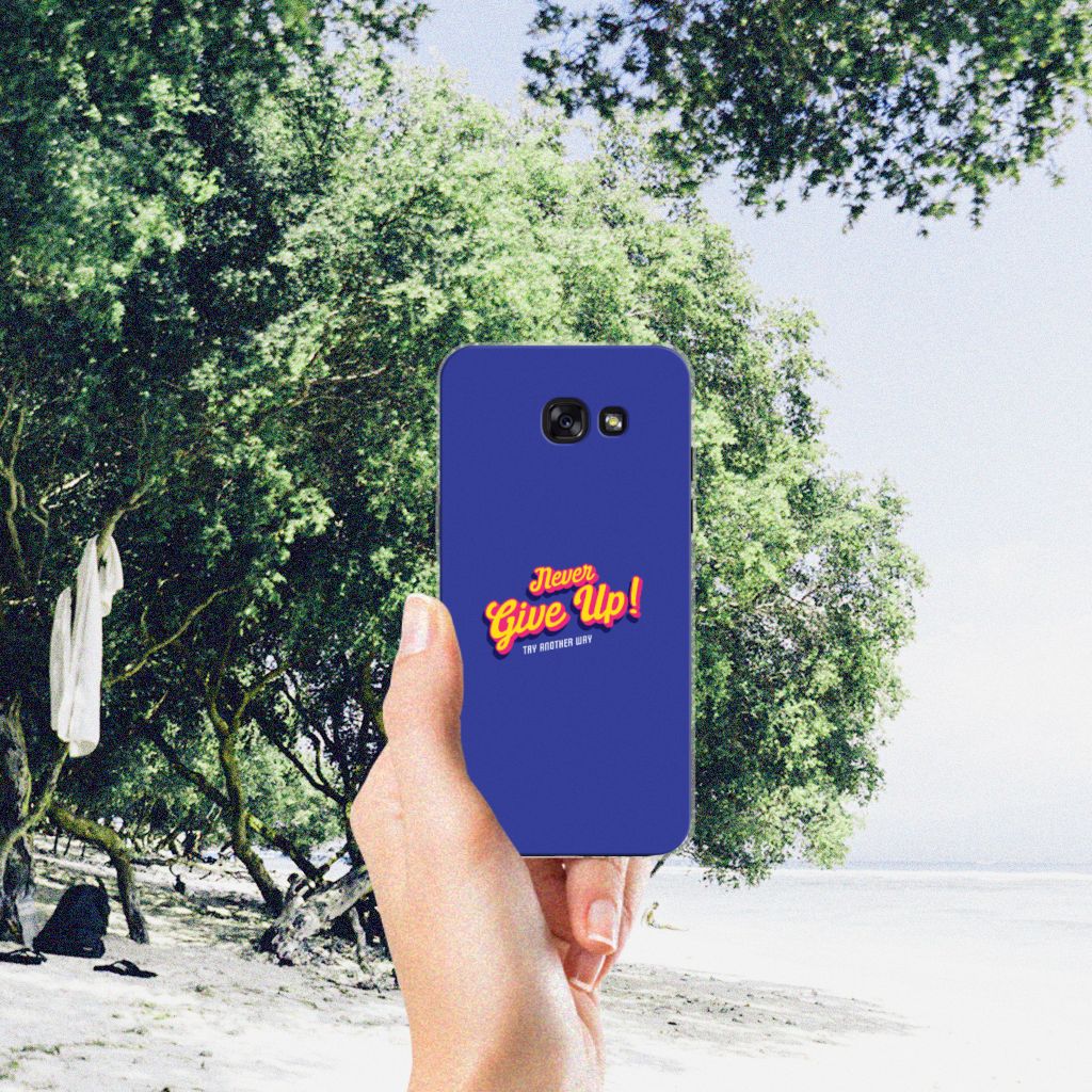 Ben je op zoek naar een uniek telefoonhoesje voor je Samsung Galaxy A5 2017? Dan ben je bij B2C Telecom aan het juiste adres! Speciaal voor jou hebben we dit prachtige Never Give Up design in onze collectie hoesjes opgenomen. Het design wordt bedrukt op een Siliconen hoesje met naam en is gemaakt van flexibel rubber. Het design wordt alleen aan de bovenkant van het hoesje bedrukt en de randen blijven transparant. Aan de zijkanten zijn uitsparingen gemaakt waardoor je met gemak alle knoppen en poorten kunt bedienen. Wij adviseren om dit hoesje in combinatie met een screenprotector te gebruiken voor een langere levensduur van je telefoon. Wil je dit design hoesje nog iets extra's geven? Voeg dan gratis je naam of een quote toe! Is dit design hoesje toch niet helemaal wat je zocht? Ontwerp dan zelf een hoesje in ons ontwerpprogramma.