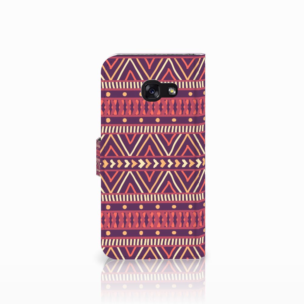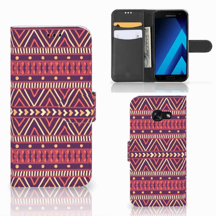 De Azteken leefden tussen 1200 en 1521 in het huidige Mexico. De mooie Aztec-patronen waar zij bekend om stonden, zien we nu nog op kleding, stoffen en tassen. Wie had toen kunnen bedenken dat we diezelfde prints honderden jaren later zelfs op een telefoonhoesje zouden vinden? Dit Aztec Purple-hoesje is perfect voor iedereen die een stukje geschiedenis bij zich wil dragen maar ook gewoon een mooi patroon op zijn hoesje wil. Dit vrolijke, kleurrijke ontwerp staat op een Telefoon Hoesje voor de Samsung Galaxy A5 2017. Zo heb je naast een beschermde telefoon ook plek voor twee (bank)pasjes, geld en heb je meteen je belangrijkste bezittingen bij de hand. De houder is gemaakt van TPU, de buitenzijde van PU-leer.