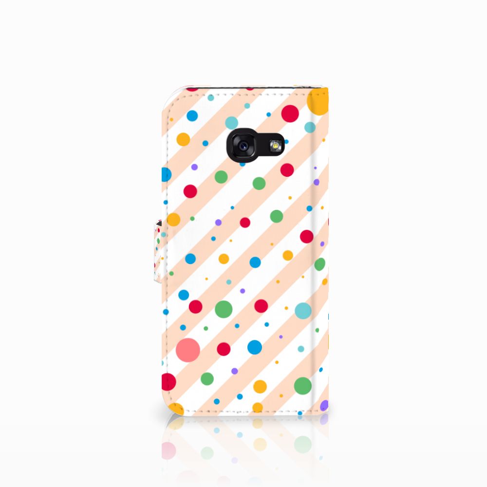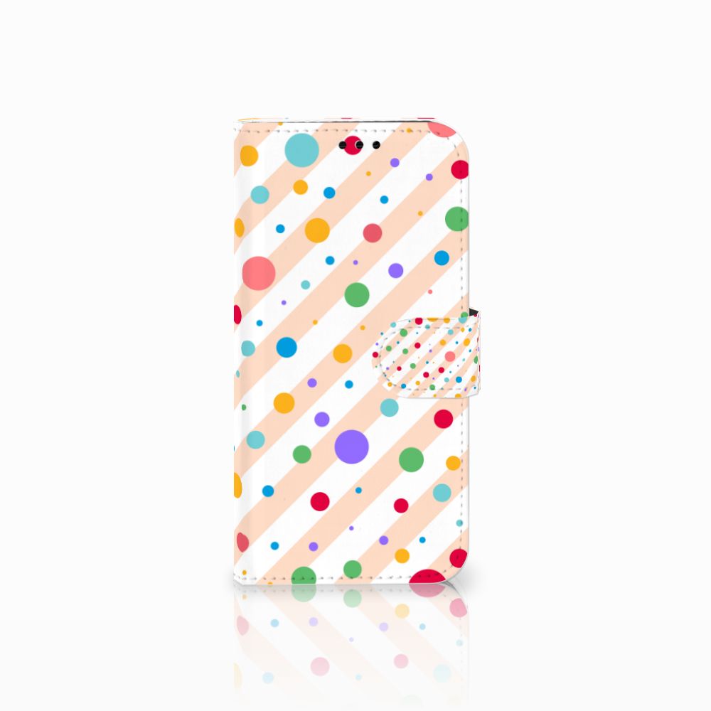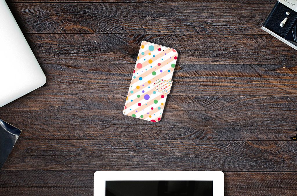 Een Samsung Galaxy A5 2017 Telefoon Hoesje met verschillende kleuren stippen is een schitterende bescherming van jouw smartphone. Het boekhoesje met het design Dots in alle kleuren van de regenboog komt voor jou als geroepen. Maak je geen gebruik van dit zeer mooie hoesje, dan kan het met jouw smartphone een beetje beroerd aflopen. Dit mooie boekhoesje met verschillende kleuren stippen zorgt voor een volledige bescherming van je smartphone en wordt aan alle zijden bedrukt. Sommige stippen staan ook op het magnetische lipje aan de buitenzijde. Verder is de houder aan de binnenzijde van TPU. Jouw telefoon is dus zeer goed opgeborgen en kan geen kant op. Met een hoesje met stippen in verschillende kleuren op alle zijden blijft jouw telefoon volledig in tact. Heb je liever een boekhoesje met stippen in andere opvallende kleuren? Ontwerp dan zelf case met je eigen foto’s en teksten!