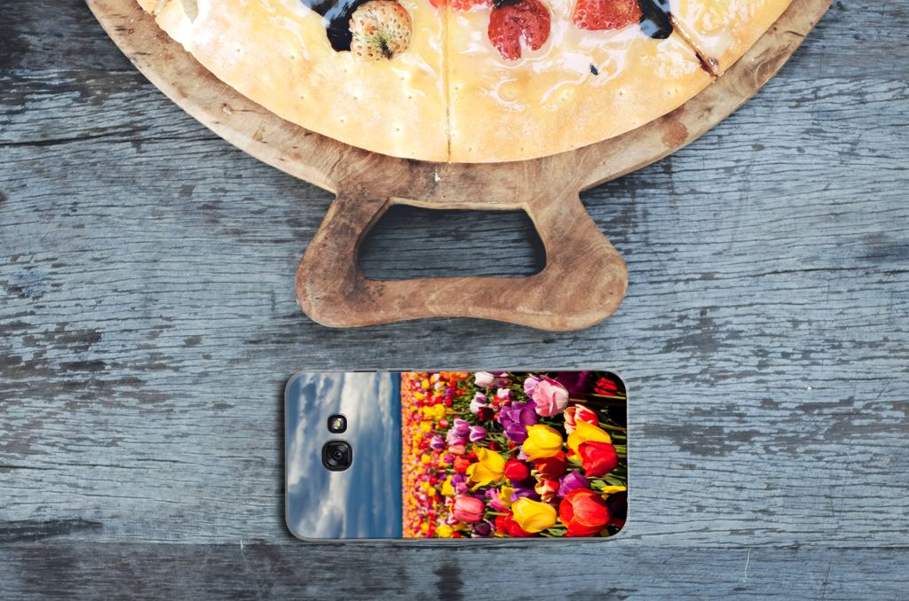 De tulp is een oer-Nederlandse bloem en heeft een lange geschiedenis. Deze Samsung Galaxy A5 2017 TPU Case met Tulpen ziet er bijzonder kleurrijk uit. Dit fleurige smartphone hoesje geeft een bijzondere bescherming van jouw apparaat. Tulpen zijn ideaal voor een kleurrijk begin van het tuinseizoen. Iedereen wordt er vrolijk van om te zien hoe deze bloemen het voorjaar kleur geven en het begin van de warmere tijd van het jaar aankondigen. Dan kan het toch niet anders of jij wordt heel erg blij van deze tpu case met tulpen? Deze tpu case is zeer flexibel en past altijd in je broekzak. Het materiaal is zeer elastisch en onbreekbaar. De case wordt niet aan alle zijden bedrukt met tulpen. De randen blijven transparant. Je kunt ook zelf een tpu case maken met daarop jouw favoriete bloem.