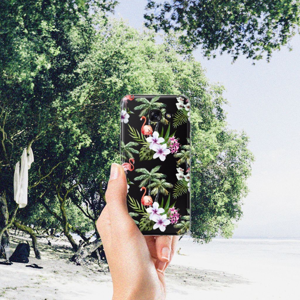 Een Samsung Galaxy A5 2017 TPU Hoesje met Flamingo Palms is in vele opzichten bijzonder. De rode flamingo op het hoesje kent zijn oorsprong in het Caraïbische gebied. Stel dat je in deze regio vakantie aan het vieren bent, dan val je zonder meer op met dit hoesje met flamingo’s en palmbomen. Deze tpu case beschermt je telefoon met name aan de achterkant en de zijkanten. Deze tpu case met flamingo’s en palmbomen is op maat gemaakt voor jouw smartphone en ligt altijd goed in je hand. De TPU case met flamingo’s en palmbomen en is ook zeer flexibel. De zijkanten van case blijven transparant.