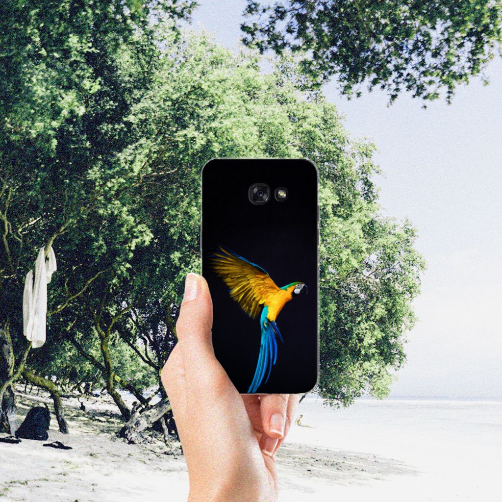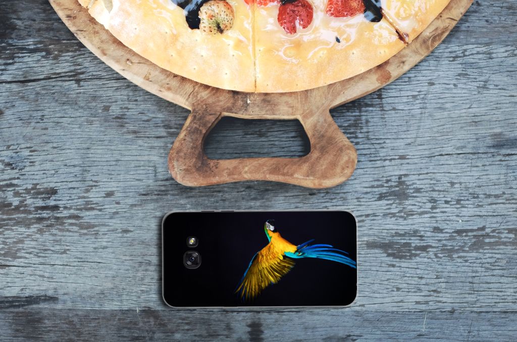 Dit design hoesje met Papegaai tegen een zwarte achtergrond is een zeer flexibele bescherming voor jouw smartphone. Dit komt vooral omdat deze print op een tpu case staat. Dit is een zeer buigzaam hoesje, dat de telefoon vooral aan de achterkant en zijkanten beschermt. De bovenkant van de Samsung Galaxy A5 2017 TPU Hoesje wordt bedrukt met deze schitterende print. De zijkanten blijven doorzichtig. Papegaaien zijn erg sociale vogels die voldoende aandacht en gezelschap nodig hebben. Als je er voor kiest om een papegaai aan te schaffen, is het een goed idee om een koppeltje te nemen. Koop je meerdere tpu cases met een papegaai, dan ga je automatisch minder betalen per hoesje. Wij hanteren een systeem van bundelkorting. Dus koop dit hoesje met opstaande randen voor een spotprijs.