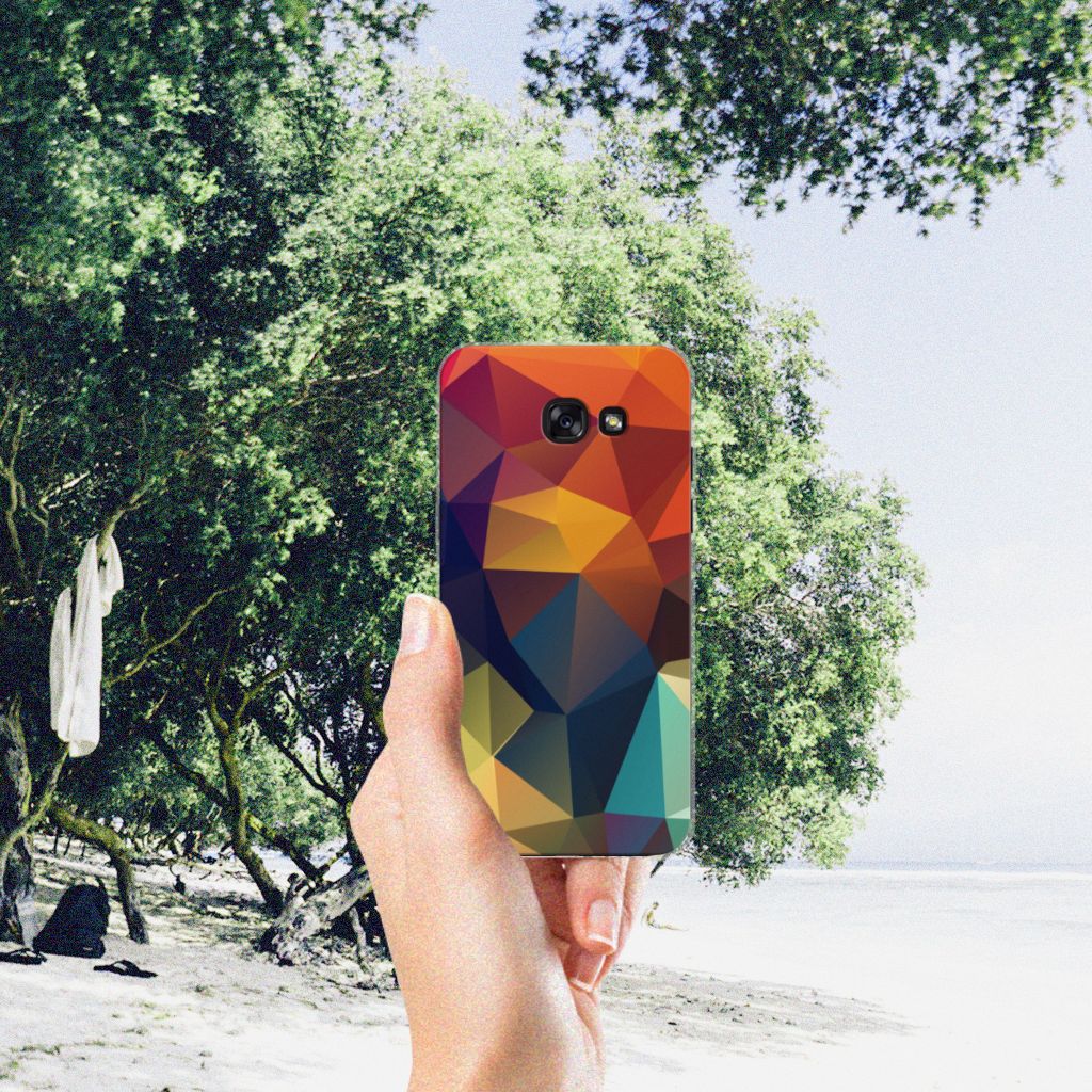 Veelkleurige driehoeken die samen eindeloze asymmetrische patronen lijken te vormen. Het is het abstracte schouwspel dat op dit fraaie hoesje voor je Samsung Galaxy A5 2017 direct de aandacht trekt noemen we voor het gemak trekt noemen we voor het gemak Polygon Color. De een ziet er een berglandschap in, de ander piramides. Wat zie jij erin? Zeker is in elk geval dat de aanblik van dit fascinerende ontwerp je niet snel gaat vervelen. Het kleurige spel van lijnen en vlakken blijft eindeloos boeien en geeft jouw TPU Hoesje een hippe en kunstzinnige uitstraling. De kracht die het lijnenspel uitstraalt, komt ook terug in het hoesje zelf. Dit hoesje wordt alleen aan de bovenkant bedrukt en is zeer flexibel. De randen van het hoesje blijven transparant. Wat wil je nog meer?