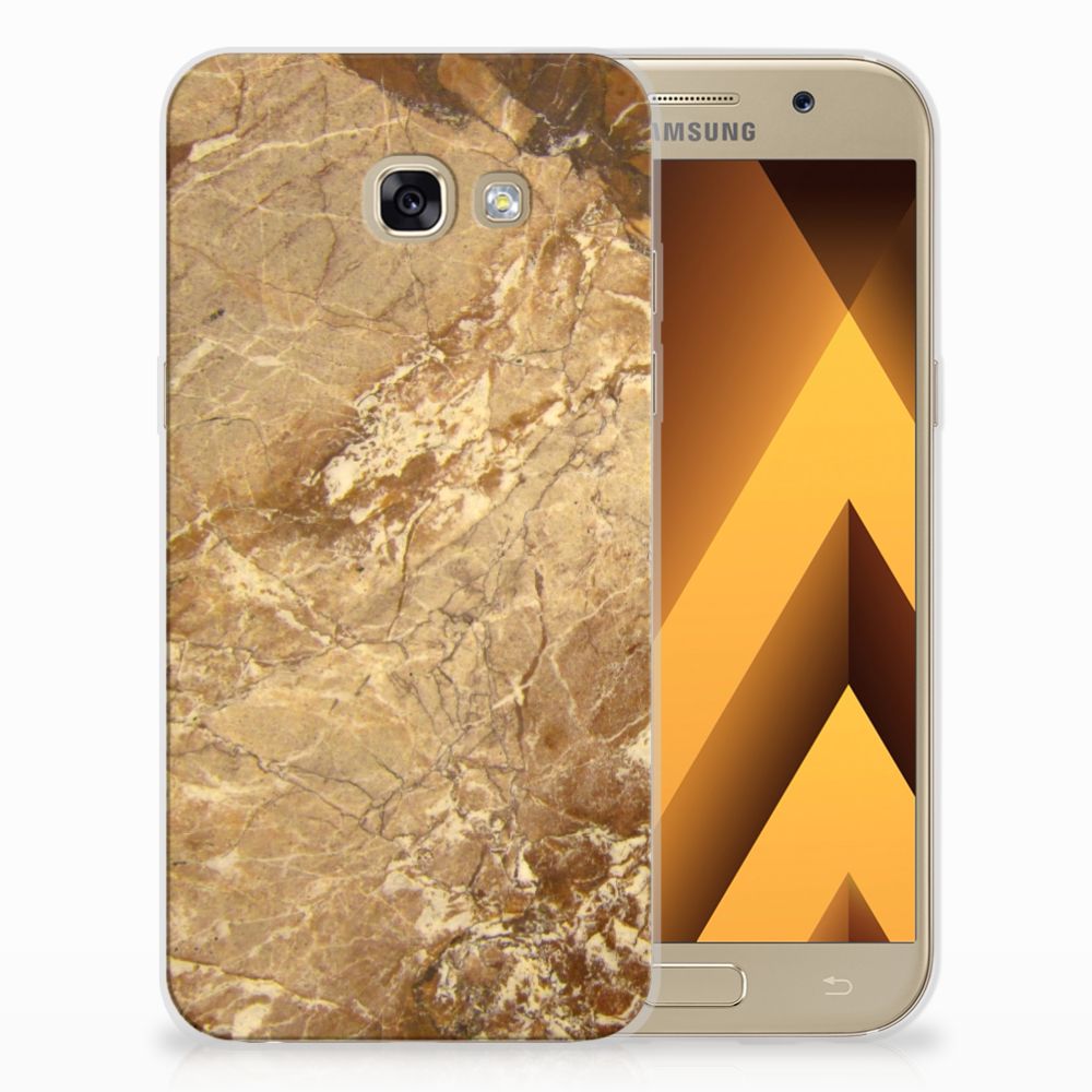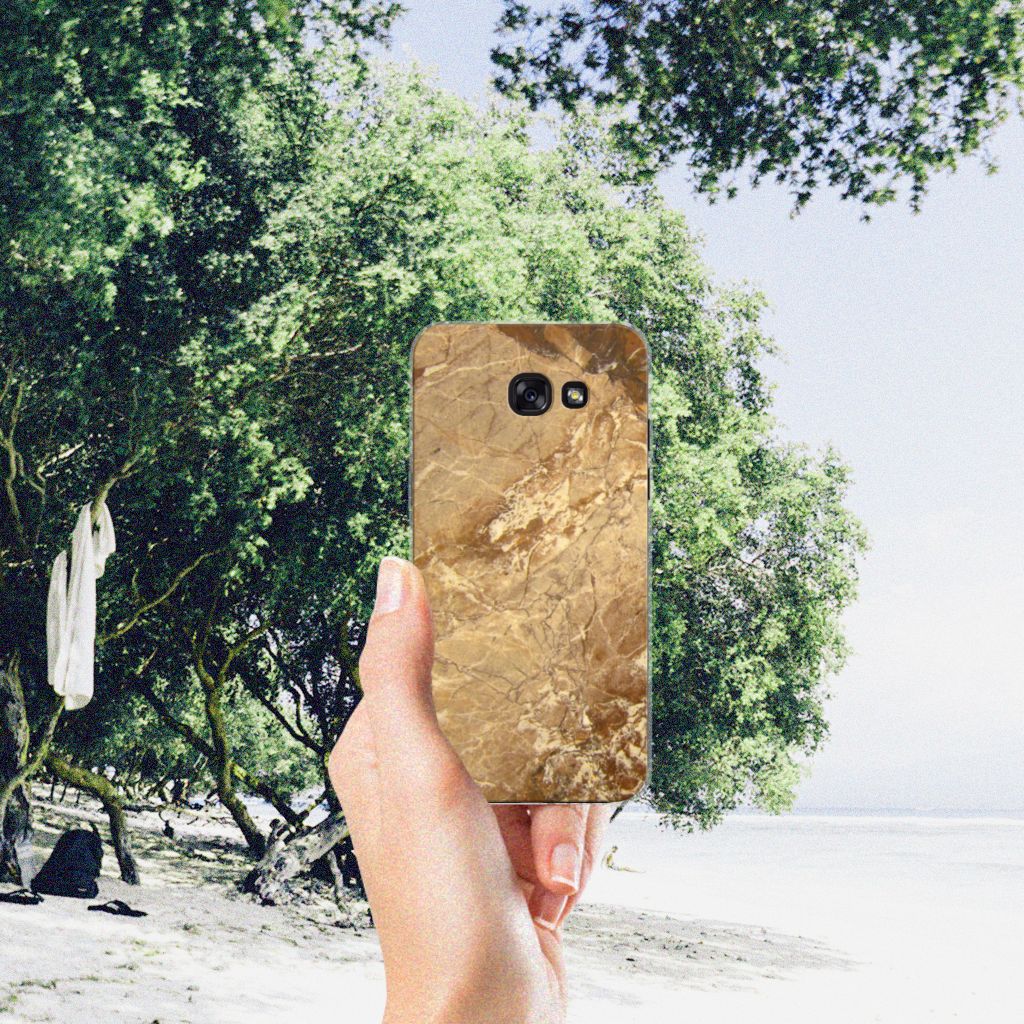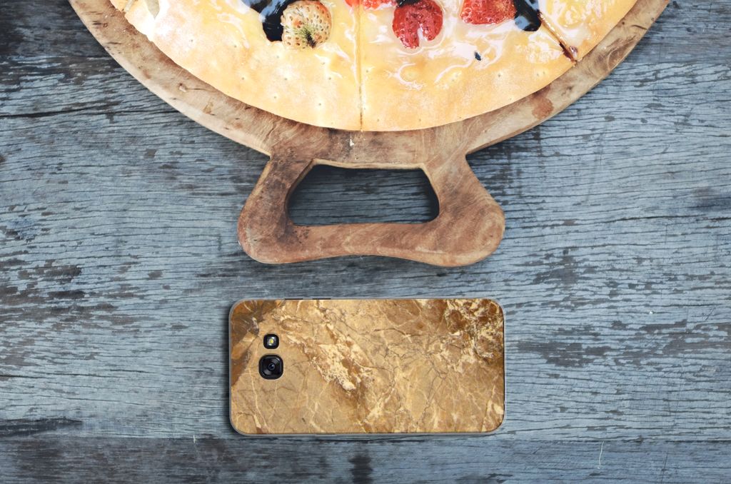 Dit design hoesje met Marmer in lichtbruine kleur is voor de artistiekelingen onder ons. De Grieken en Romeinen wisten het marmer al te waarderen door het in de bouw toe te passen. Naast het witte marmer zijn de diverse soorten marmer in een gevarieerde kleurensamenstelling te krijgen. We hebben verschillende mooie kleuren op design hoesjes gezet, zoals in dit geval het lichtbruine marmer. Dit is een Samsung Galaxy A5 2017 TPU Siliconen Hoesje met marmer in lichtbruine kleur. Het marmer wordt bedrukt op de voorkant van een tpu case, die beschikt over opstaande randen aan de voorkant en heel goed combineert met een screenprotector van glas of van folie. Door de rijkdom aan kleuren en varianties in afwerking kunnen ontwerpers met marmer schitterende architectonische projecten realiseren. Wij hebben hetzelfde gedaan en onze ontwerper veel vrijheid geboden. Het resultaat zie je terug in deze tpu case met lichtbruin marmer, die jouw smartphone goed beschermt. De zijkanten van de case worden niet bedrukt met het lichtbruine marmer.