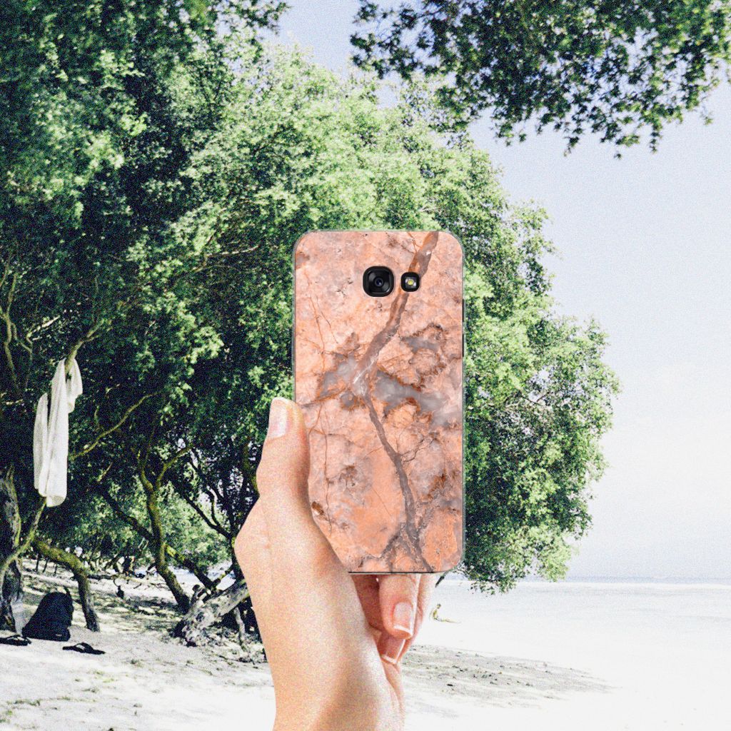 Dit design hoesje met Marmer Oranje is zeer geschikt voor jouw kostbare telefoon. Vanwege zijn prachtige lichtval en vastheid is marmer een zeer gewild bouwmateriaal. Wij kunnen inmiddels concluderen dat dit hoesje met oranje marmer ook zeer gewild is. Beloon jezelf en je telefoon met dit hele mooie Samsung Galaxy A5 2017 TPU Siliconen Hoesje. Naast het oranje marmer zijn er de diverse marmersoorten in een ruim kleurenpallet te krijgen. Deze tpu case met marmer in oranje wordt aan de achterzijde bedrukt. De case beschikt over opstaande randen en is gemaakt van onbreekbaar materiaal. De randen van de case in oranje marmer blijven transparant. Wij hebben onze designer veel vrijheid gegeven met het ontwerpen dit mooie hoesje. Het resultaat zie je terug in deze tpu case met oranje marmer, dat een hele goede bescherming is voor jouw smartphone. Des te mooi dat wij voor variatie hebben gekozen door een hoesje met oranje marmer aan de bieden.