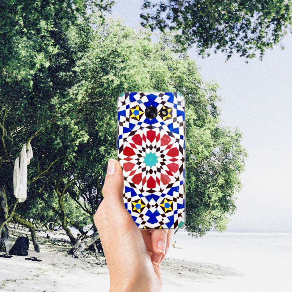 Aan design hoesjes met kunstvormen geen gebrek in onze uitgebreide collectie. Wat dacht je van dit design hoesje met Mozaïek . Dit is een kunstvorm waarbij een grote afbeelding wordt gemaakt uit een groot aantal kleine gekleurde steentjes (tesserae), die in een vloer of wand worden gemetseld. Deze gekleurde steentjes zie je terug op deze tpu case met design van mozaïek. Een tpu case is zeer flexibel. Een Samsung Galaxy A5 2017 TPU Siliconen Hoesje met print zorgt voor een bescherming van de achterzijde en zijkanten van je smartphone. Deze zijkanten worden niet bedrukt. De Grieken en Romeinen beheersten de kunst al. Op diverse plaatsen in Europa zijn mozaïeken teruggevonden die tot op de dag van vandaag goed bewaard zijn gebleven. Met een tpu hoesje met mozaïek blijft jouw telefoon in tact.