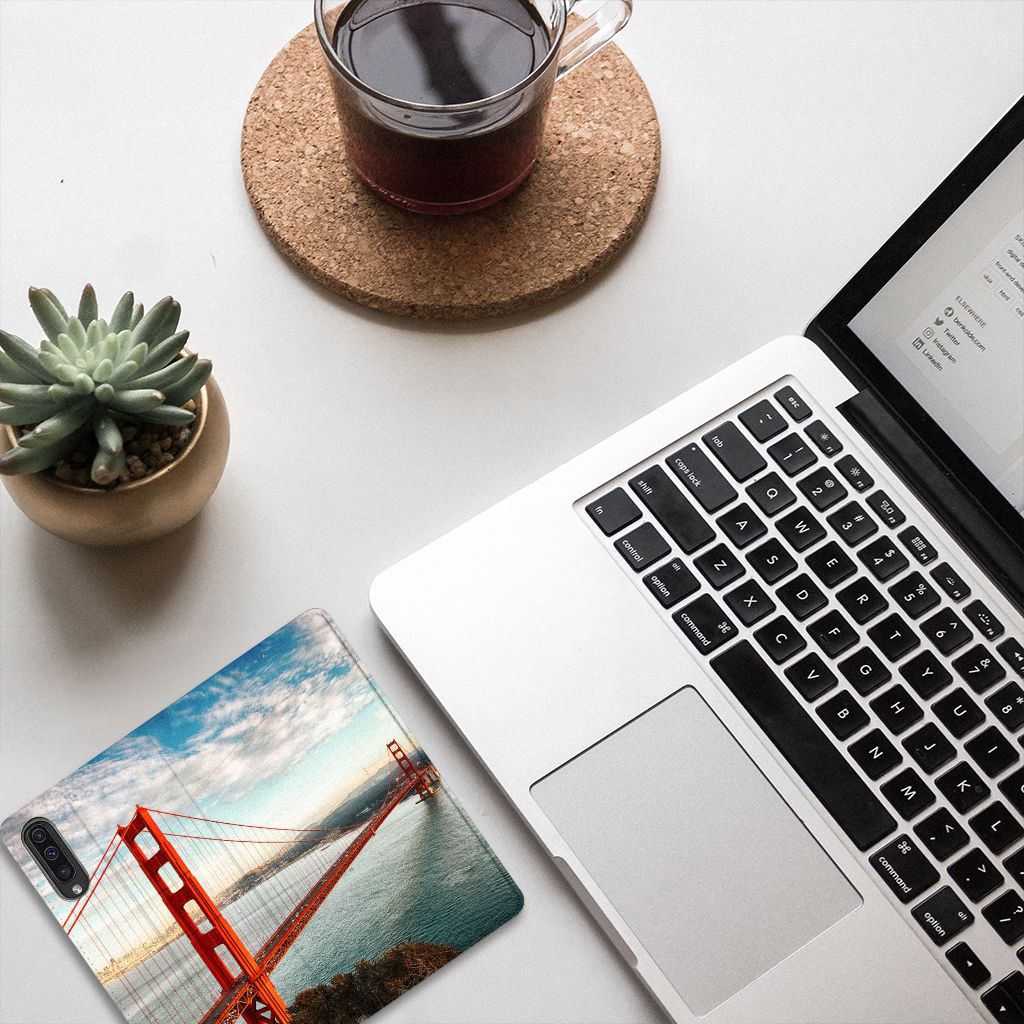 De Golden Gate Bridge is een technisch meesterwerk. Een van de langste en hoogste hangbruggen ter wereld is een schitterend staaltje van ingenieurskunst en een prachtig monument, dat met de rode kleur fel afsteekt tegen de omgeving. Dit monument komt op een fraaie manier tot uitdrukking op deze Samsung Galaxy A50 Book Cover. Het telefoonhoesje met design heeft 1 opbergvakje, waarin je een pasje of briefgeld kunt stoppen. Jouw telefoon past precies in de houder van TPU en de case wordt aan de binnenzijde magnetisch afgesloten. De Golden Gate Bridge is vanuit vele plekken in en rond San Francisco op een spectaculaire manier zichtbaar. Alle kanten van het telefoonhoesje worden bedrukt met foto’s van dit monument. Jouw telefoon is aan alle kanten goed beschermd met dit design hoesje met Golden Bridge print.