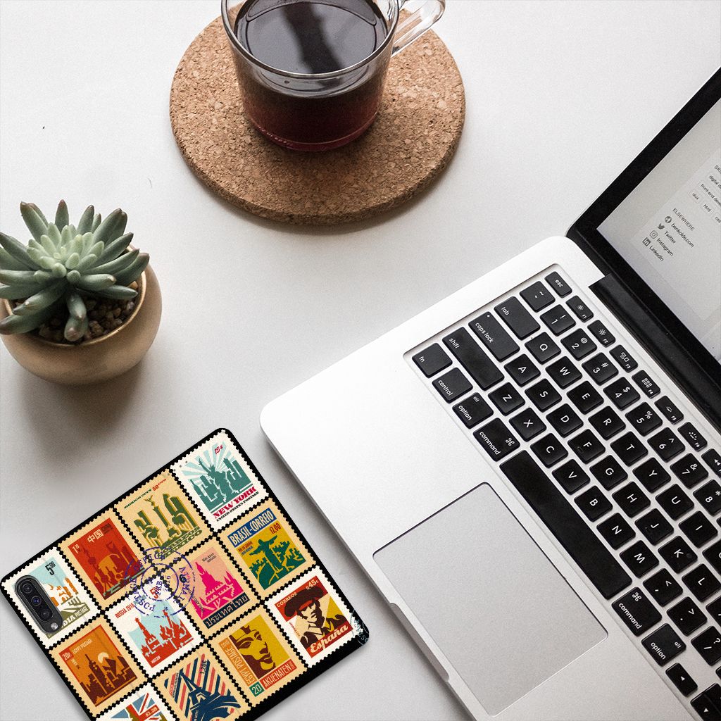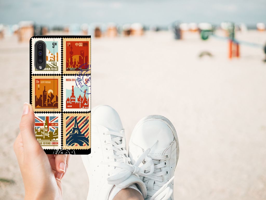 Voor de postzegelverzamelaars onder ons is dit hoesje met Postzegels uit verschillende landen een zegen. Maar ook andere smartphone gebruikers zullen enthousiast raken bij het zien van deze fraaie stand case met zegels uit verschillende landen. Op een Samsung Galaxy A50 Book Cover kun je er nogal wat kwijt, omdat alle zijden van de case kunnen worden bedrukt. Zelfs de standaard aan de buitenzijde is voorzien van een postzegel print. Aan de binnenzijde tref je een vakje aan voor een pasje of briefgeld en een houder van TPU. Deze klemt precies om je smartphone, zodat die veilig is opgeborgen. Mis je nog een bepaalde postzegel op deze case? Dan kun je natuurlijk ook zelf een hoesje ontwerpen met postzegels. Je bepaalt dan helemaal zelf hoe de stand case eruit komt te zien.