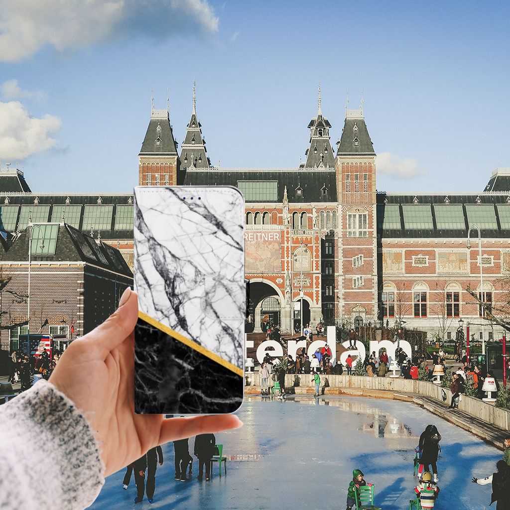 Bookcase Samsung Galaxy A50 Marmer Wit Zwart