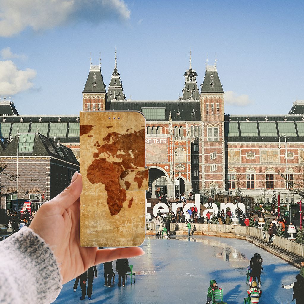 Samsung Galaxy A50 Flip Cover met pasjes Wereldkaart