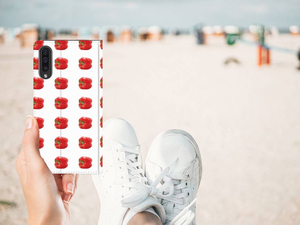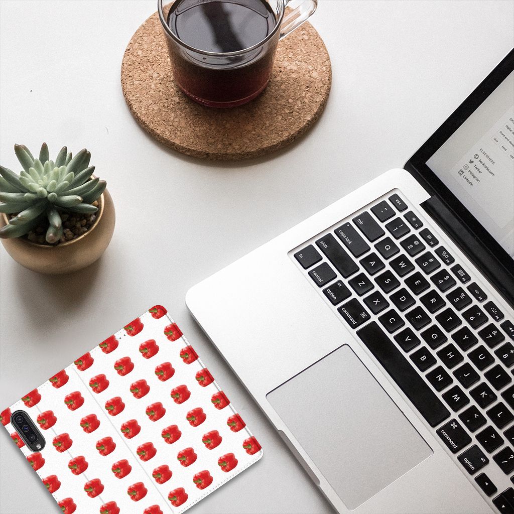 Er zit pit in jouw Samsung Galaxy A50 Flip Style Cover dankzij dit design met rode paprika’s. Paprika’s zijn er in allerlei kleuren en vormen en ze hebben gemeen dat ze heel erg gezond zijn. De rode paprika’s op deze case staan op een grijs met witte geblokte achtergrond en vormen een opvallende verschijning. Heb jij ooit iemand in je nabije omgeving rond zien lopen met een design hoesje met rode paprika’s? Waarschijnlijk niet. Dit stand hoesje met rode paprika’s beschermt jouw telefoon aan alle zijden en beschikt over een opbergvakje voor een pasje of briefgeld. De case sluit perfect af met de magneet aan de binnenzijde. Zeker weten dat je met dit hoesje met rode paprika’s een smartphone accessoire te pakken hebt waarmee je jezelf in de schijnwerpers zet. De houder aan de binnenzijde van de stand case met rode paprika’s is van TPU. Als je andere kleuren paprika’s op je hoesje wilt, raden we je aan ons assortiment design hoesjes te bekijken of zelf een hoesje te ontwerpen.