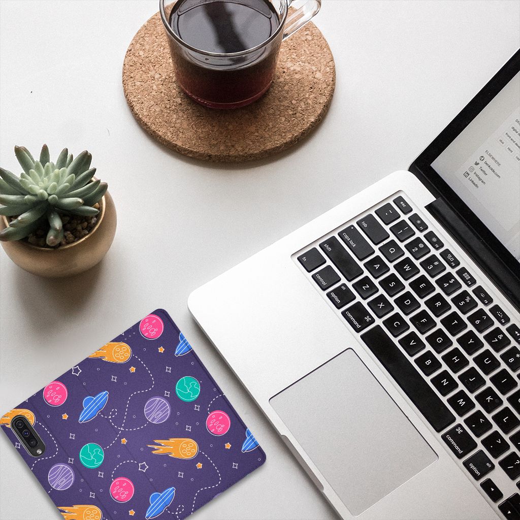 Ben je een beetje geïnteresseerd in buitenaards leven? Dan kan je wel eens enthousiast raken van deze Samsung Galaxy A50 Hippe Standcase met Space print. Dus mensen die van science fiction houden zullen deze case ongetwijfeld mooi vinden. Er zijn verschillende planeten en vliegende schotels te ontdekken in dit design hoesje. Dit kunstwerkje is voor heel weinig geld te bestellen op onze website. Je krijgt er maximale bescherming van je smartphone voor terug. De stand case beschermt jouw telefoon aan alle kanten en beschikt over een 1 opbergvakje en een speciale standaard. Het hoesje wordt afgesloten met een magneet aan de binnenzijde. De houder aan de binnenzijde is van TPU. Je zult ontdekken dat dit hele stevige telefoonhoesje een heel goede bescherming biedt tegen alle vormen van schade. Met dit hoesje hoef je niet bang te zijn dat er krassen op je design komen of scheuren in je scherm.